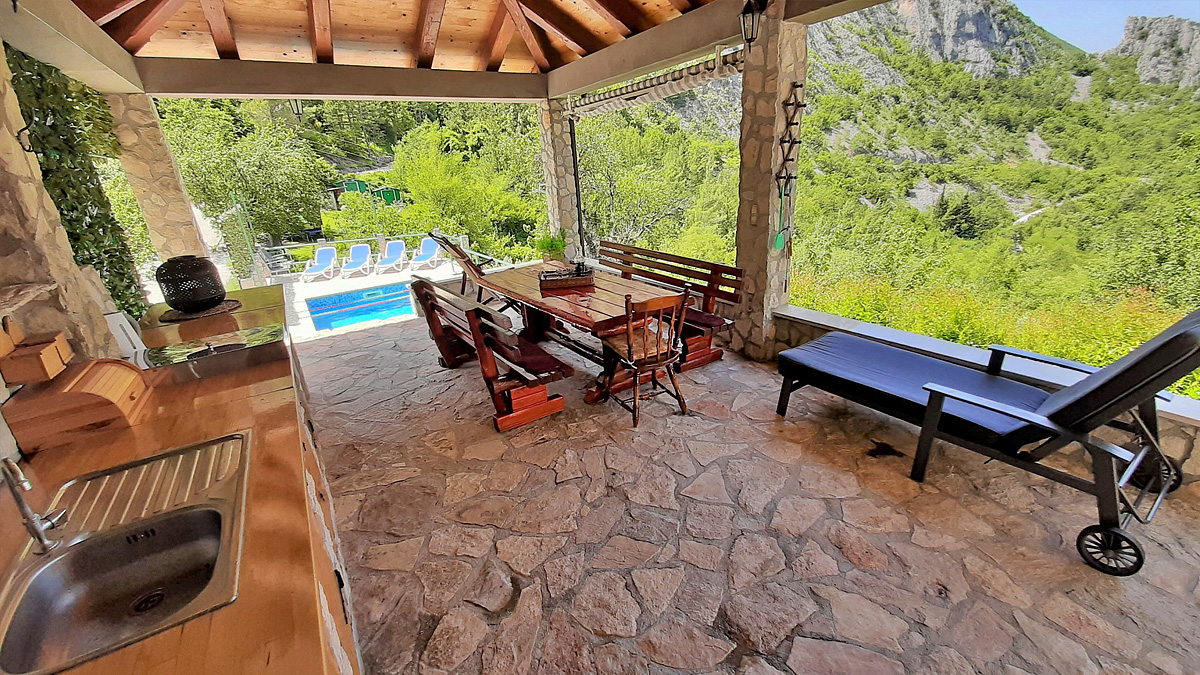 fantastická poloha na klidném místě v nedotčené přírodě, na vyvýšeném místě v kaňonu řeky Cetiny