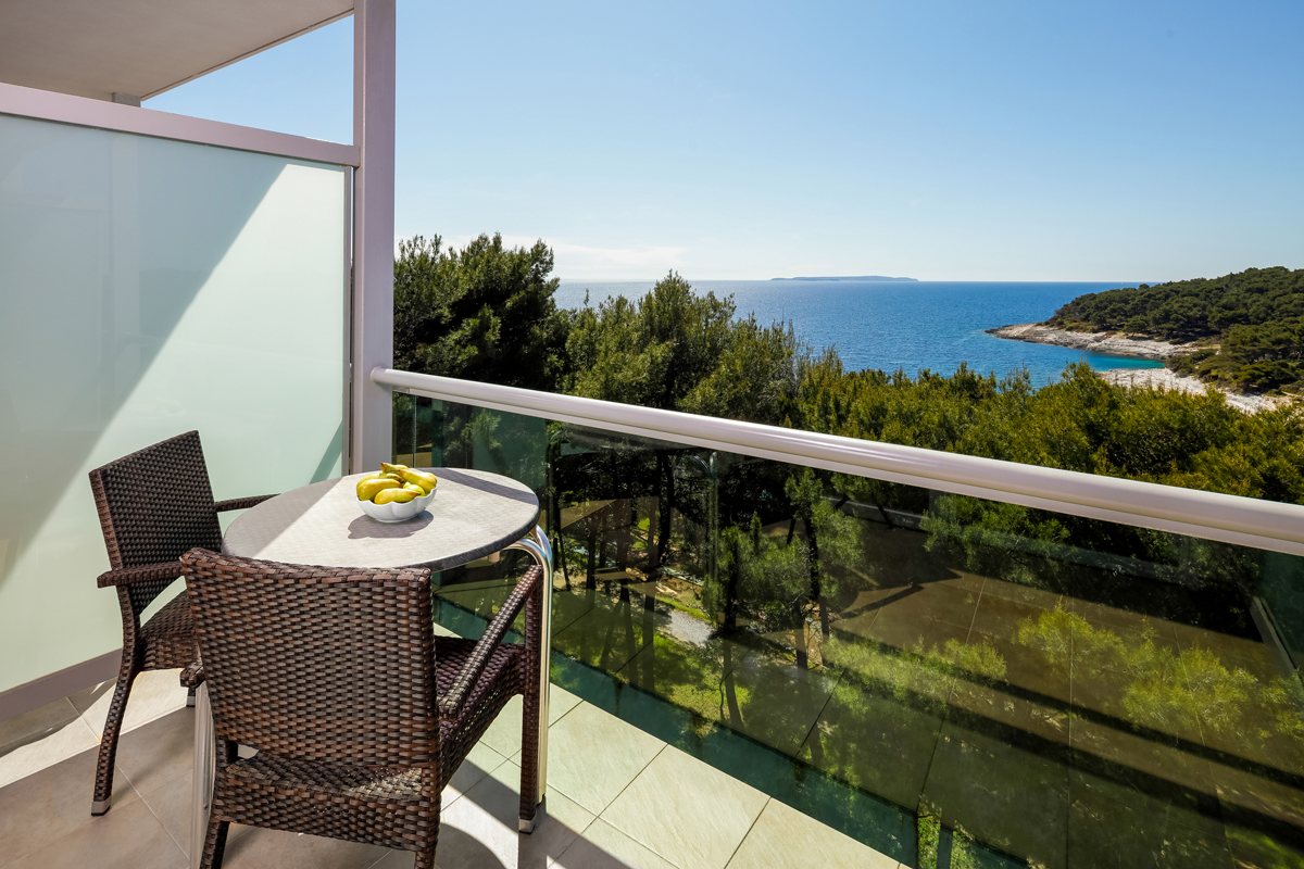 22 m², pokoj s manželskou postelí nebo dvěma oddělenými lůžky s možností přistýlky formou rozkládacího gauče (75x180 cm) pro dítě do nedovršených 5 let, sociální zařízení se sprchou, balkon orientovaný na moře