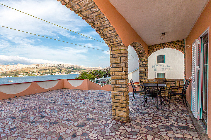 Pag, centrum - 1,5 km, pláž / oblázková, částečně písečná s pozvolným vstupem do moře - 15 m, bary a restaurace - 50 m