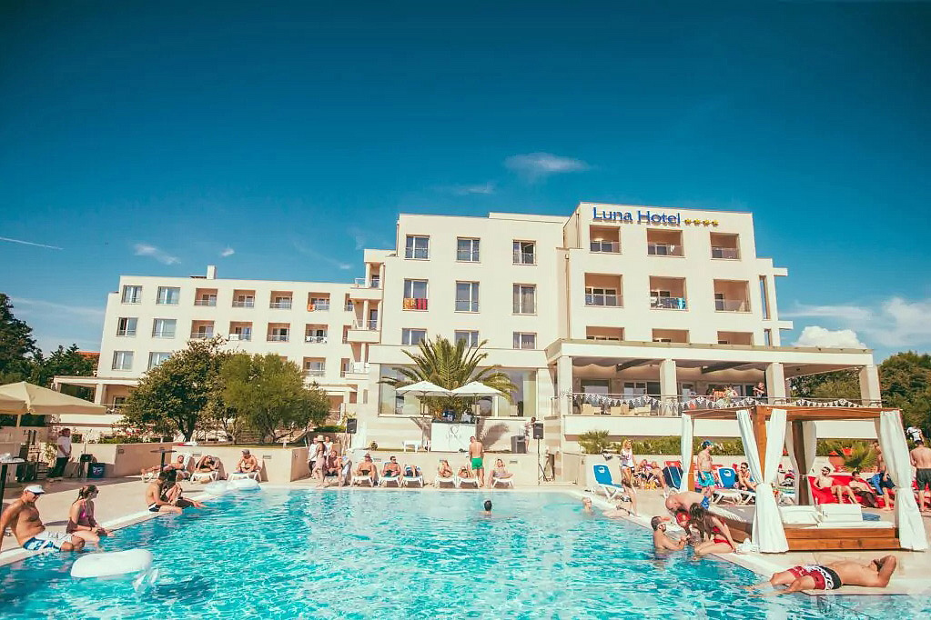 venkovní i krytí bazén, wellness* (masáže, vířivka), posilovna*, turecká i finskaá sauna*, místní animační program pro všechny věkové kategorie