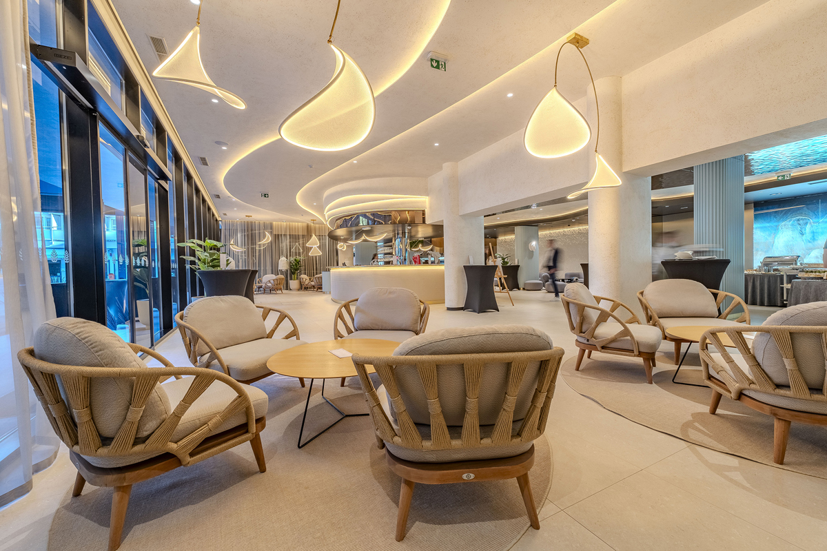 recepce, bankomat, výtah, prodejna suvenýrů*, mini market, úschovna zavazadel, nabídka výletů, hotelová restaurace, 3x á la carte restaurace s terasou, aperitiv bar, bar u bazénu, konferenční centrum – 4 konferenční sály, venkovní terasa, vyhrazené hotelové parkoviště, dětská herna, nabíjecí stanice pro elektromobily*, wi-fi připojení k internetu