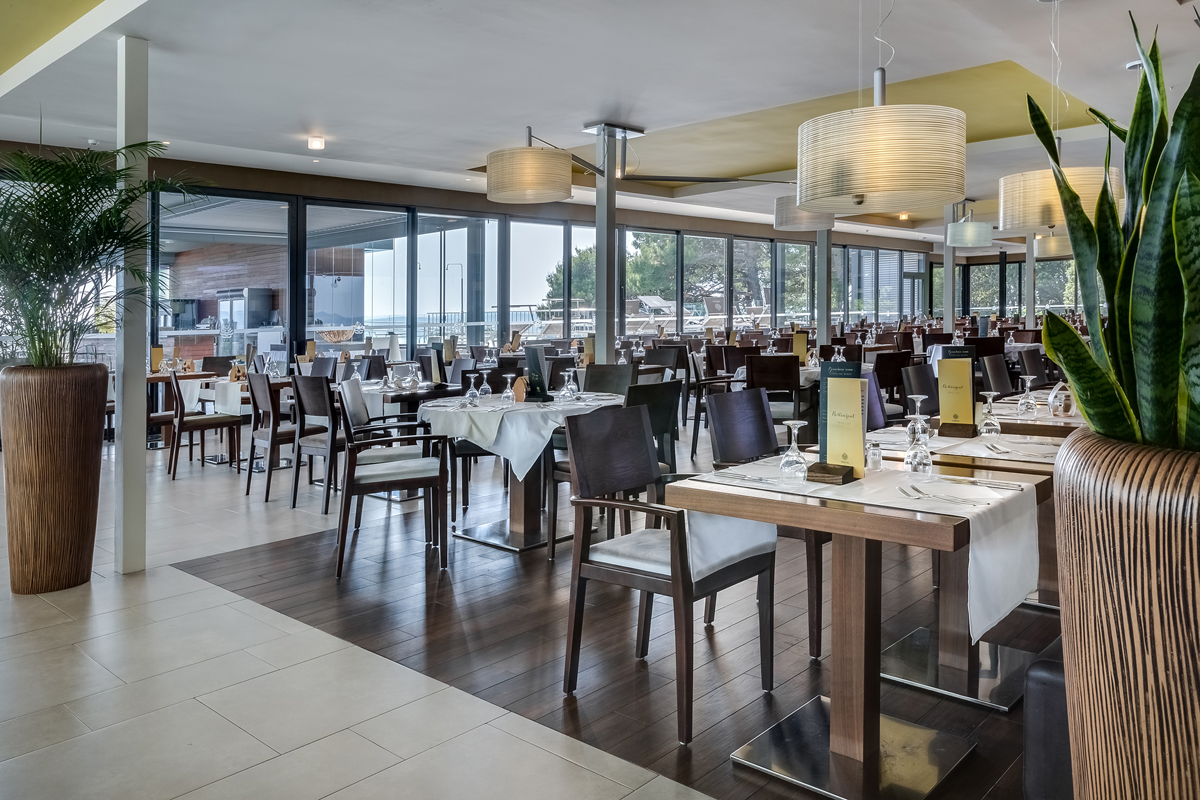 hotel nacházející se na malém poloostrůvku obklopený borovicemi