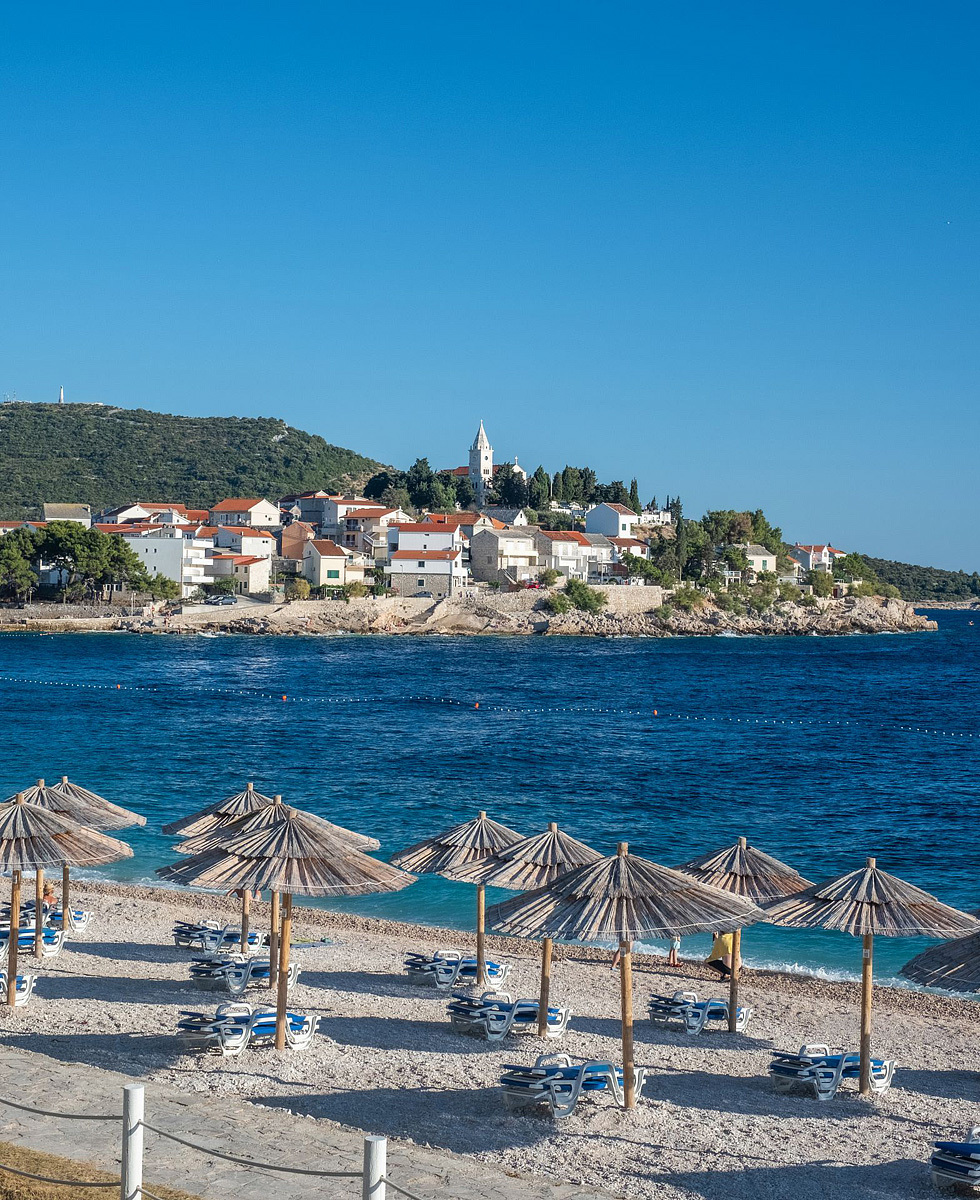 Primošten, centrum - 500 m, pláž / oblázková s pozvolným vstupem do moře - 50 m, letiště Split – 31 km