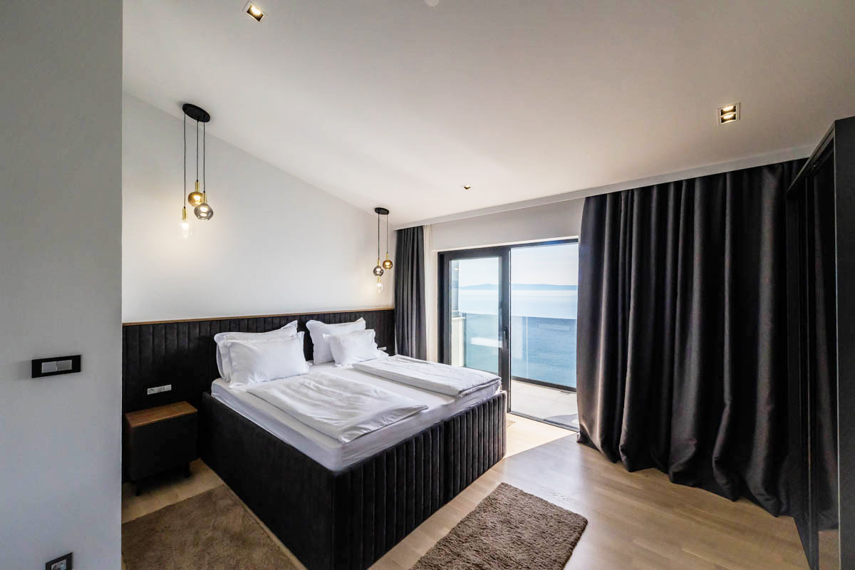 24 m² - pokoj s manželskou postelí a přistýlkou formou rozkládacího gauče, sociální zařízení se sprchou, balkon orientovaný na mořskou stranu
