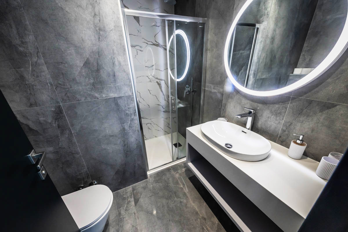 24 m² – pokoj s manželskou postelí, sociální zařízení se sprchou, balkon orientovaný na mořskou stranu