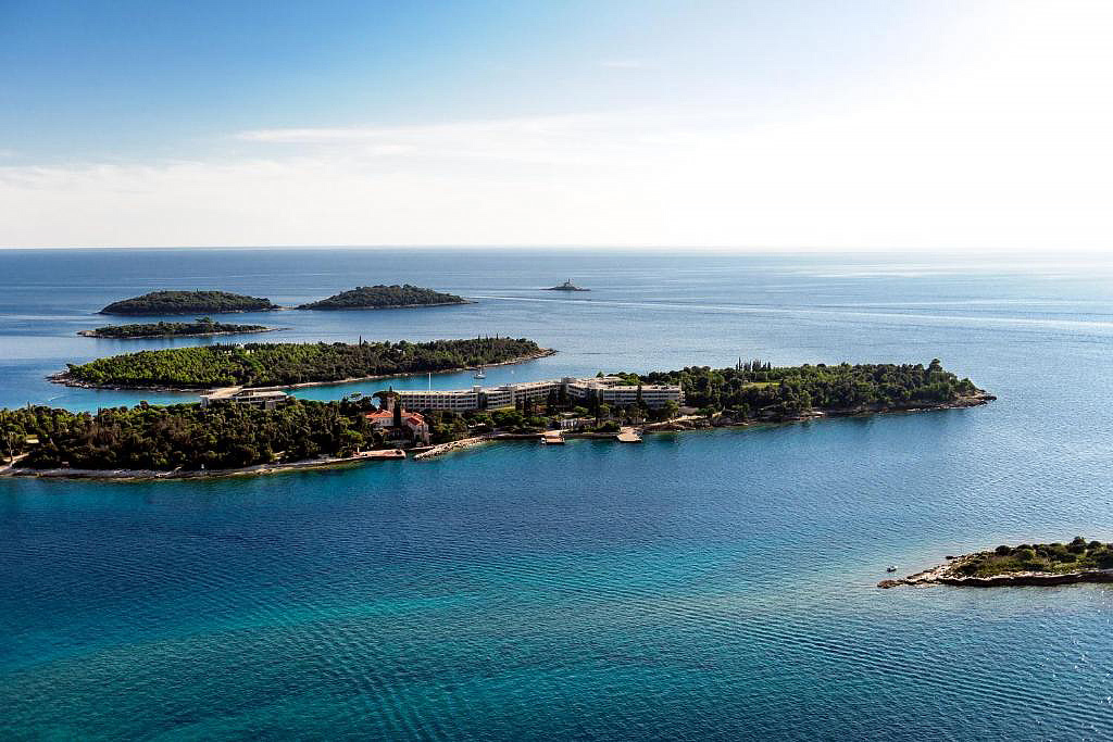 ostrov Crveni, Rovinj / centrum - 2,7 km, pláž / menší oblázková pláž (místy kamenitá) s pozvolným vstupem do moře - 50 m