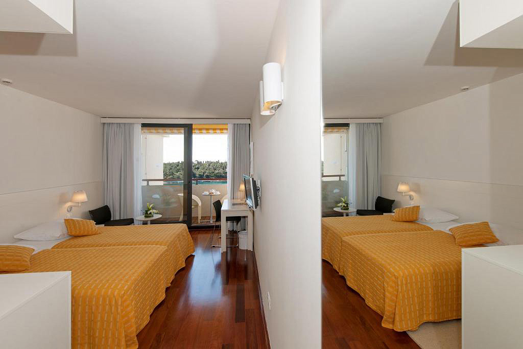 46 m² - 2x pokoj s manželskou postelí propojený dveřmi, sociální zařízení se sprchou nebo vanou, balkon orientovaný k moři