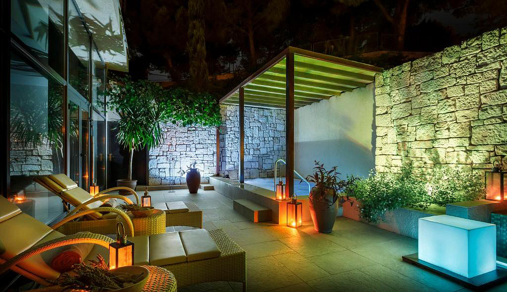 vnitřní bazén se sladkou vodou, venkovní bazén s mořskou vodou, 2 dětské venkovní bazény s mořskou vodou, wellness - finská sauna*, turecká sauna*, masáže*, solárium*, hydromasážní vana*, fitness, tenisové kurty*, stolní tenis*, hřiště pro míčové hry, dětské hřiště, plážový volejbal, vodní sporty*