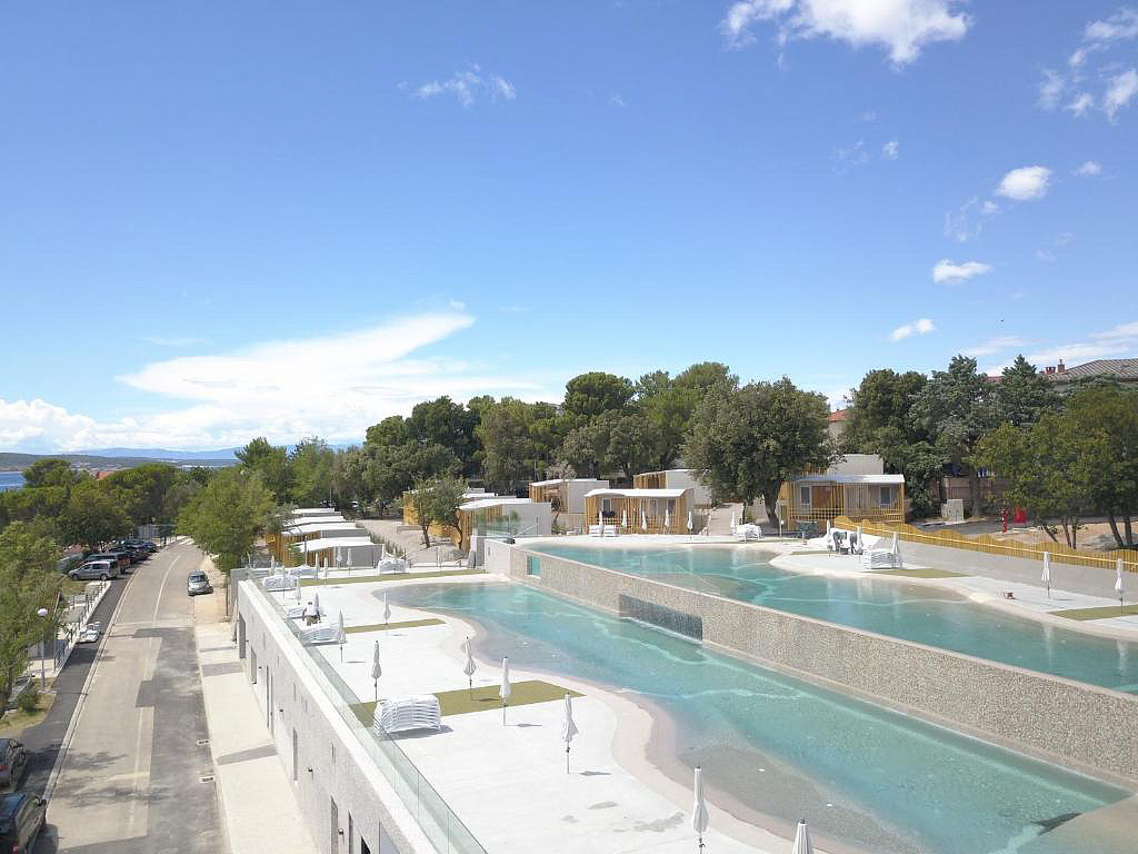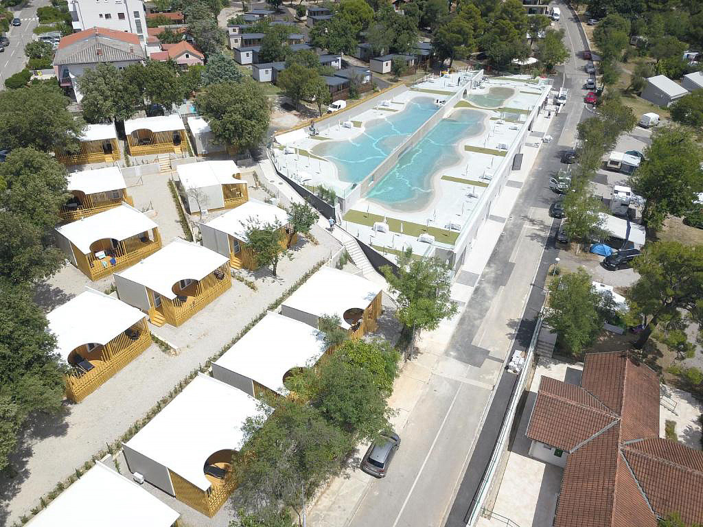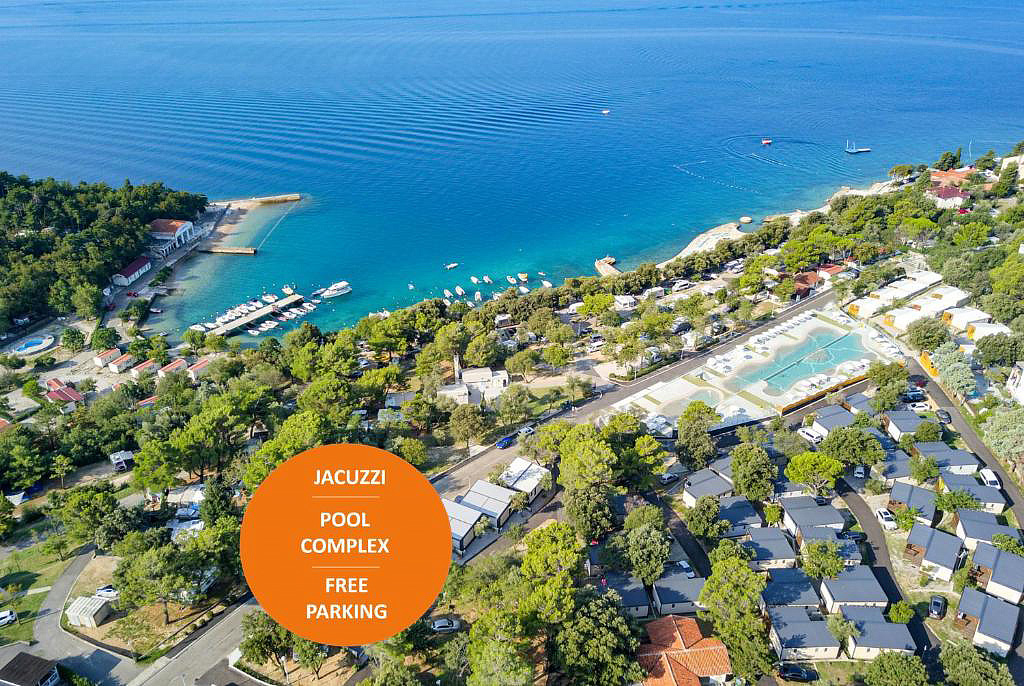 ideální poloha v klidné časti u stinného piniového lesíku nabízející odpočinek na slunci i ve stínu