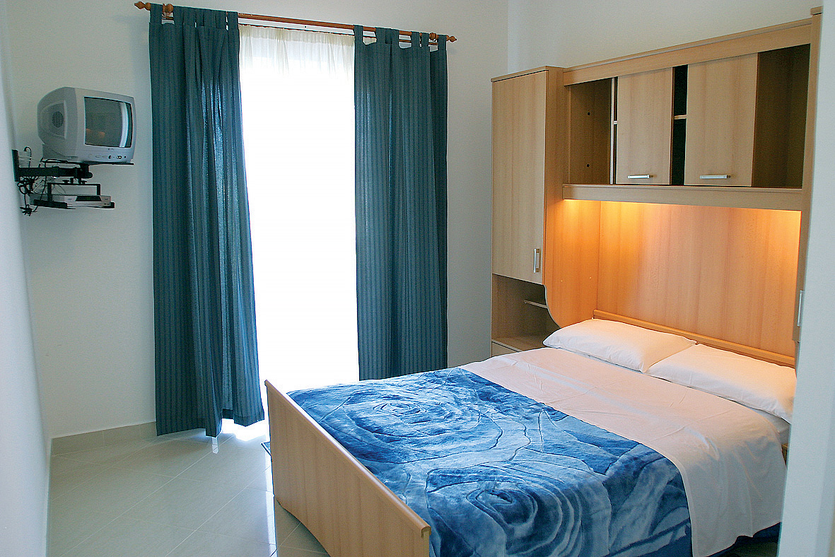 ložnice s manželskou postelí, obývací pokoj s kuchyňským koutem a rozkládacím gaučem pro 2 děti do nedovršených 18 let, sociální zařízení se sprchou, balkon