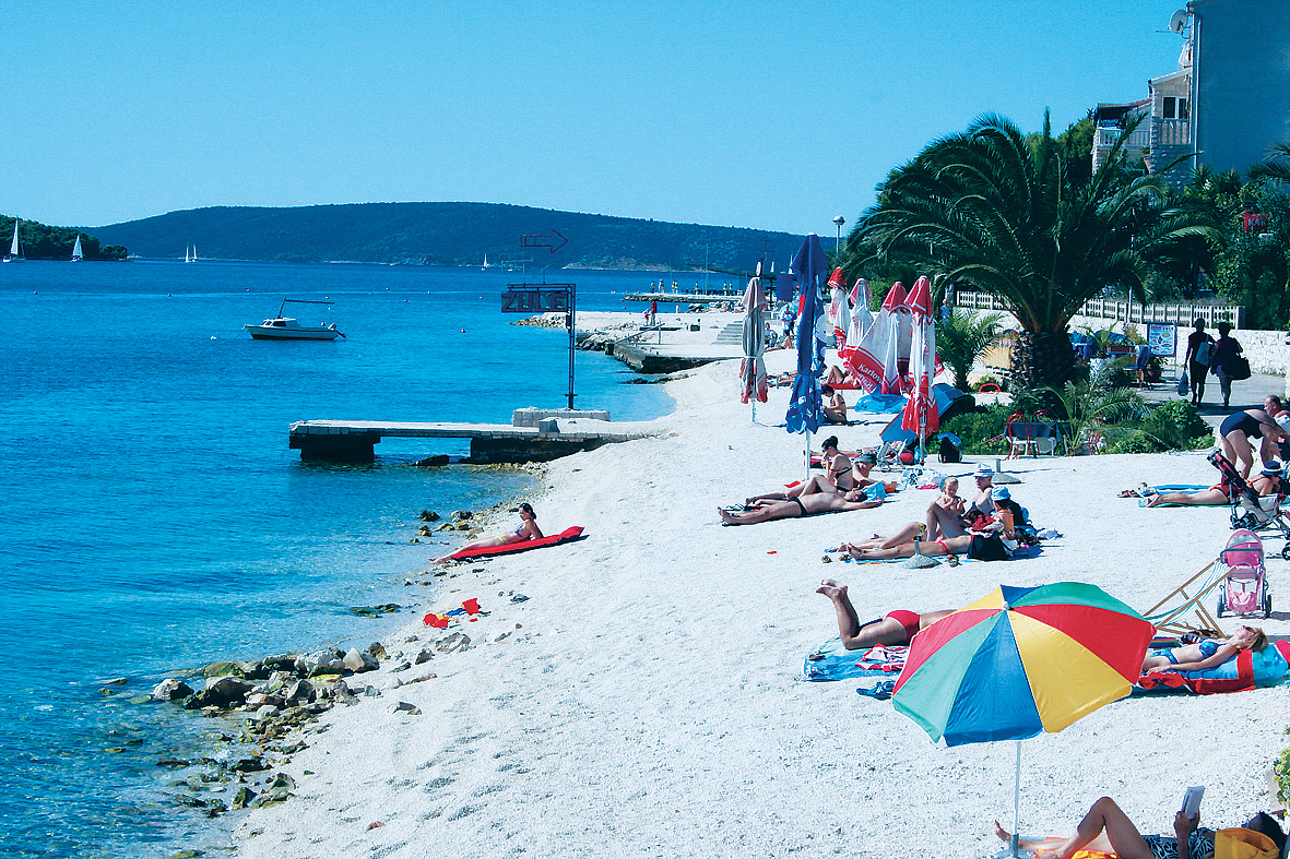 Seget Donji, centrum - 800 m, pláž / užší dlouhá oblázková s mírně se svažujícím vstupem do moře - 100 m, Trogir - 3 km