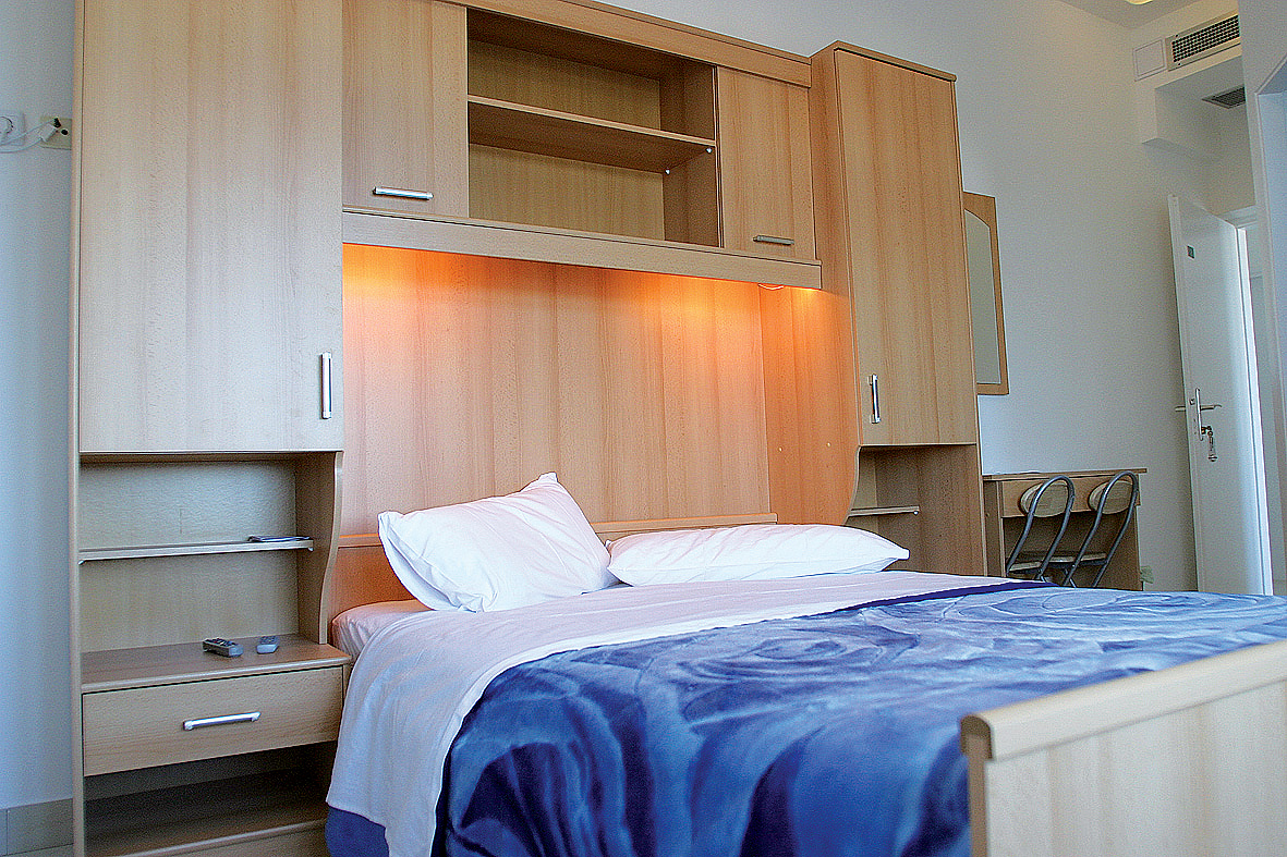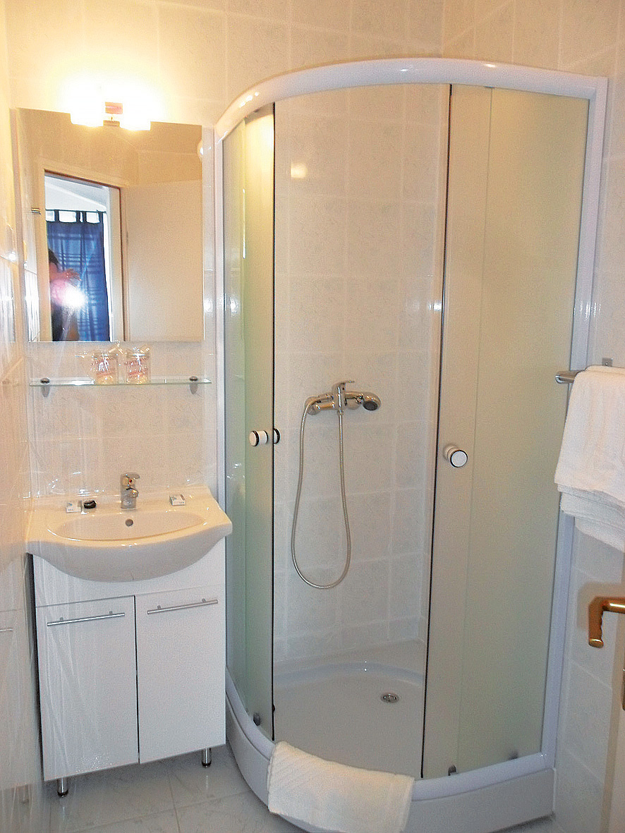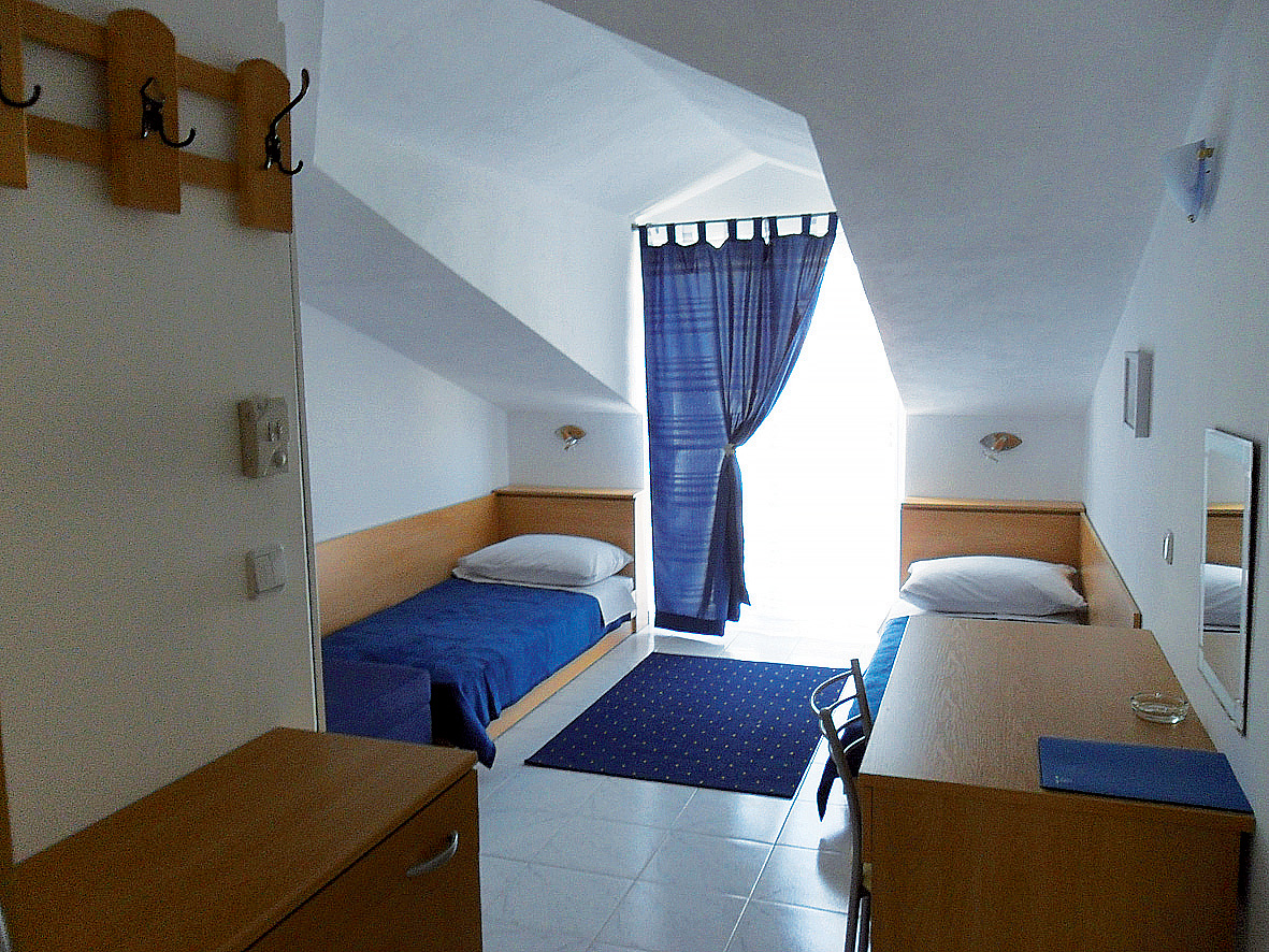 pokoj s manželskou postelí či 2 samostatnými lůžky, sociální zařízení se sprchou, balkon; 3. lůžko formou přistýlky pro děti do nedovršených 12 let