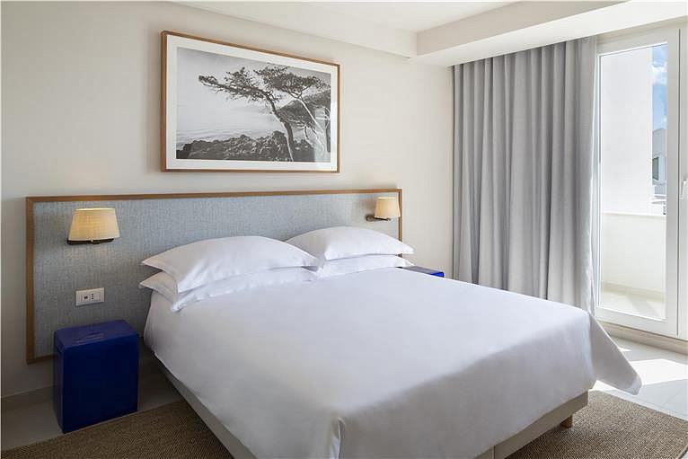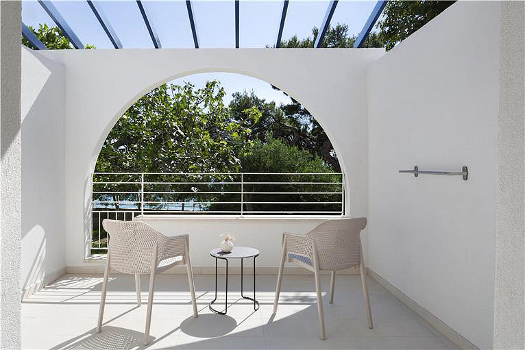 25 m² - pokoj s manželskou postelí nebo 2 oddělenými lůžky s možností přistýlky formou rozkládacího gauče pro 2 děti do nedovršených 14 let nebo jednu dospělou osobu a jedno dítě do nedovršených 14 let, sociální zařízení se sprchou, balkon orientován na mořskou stranu