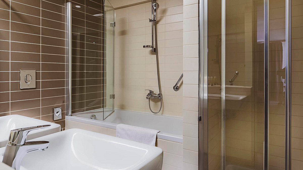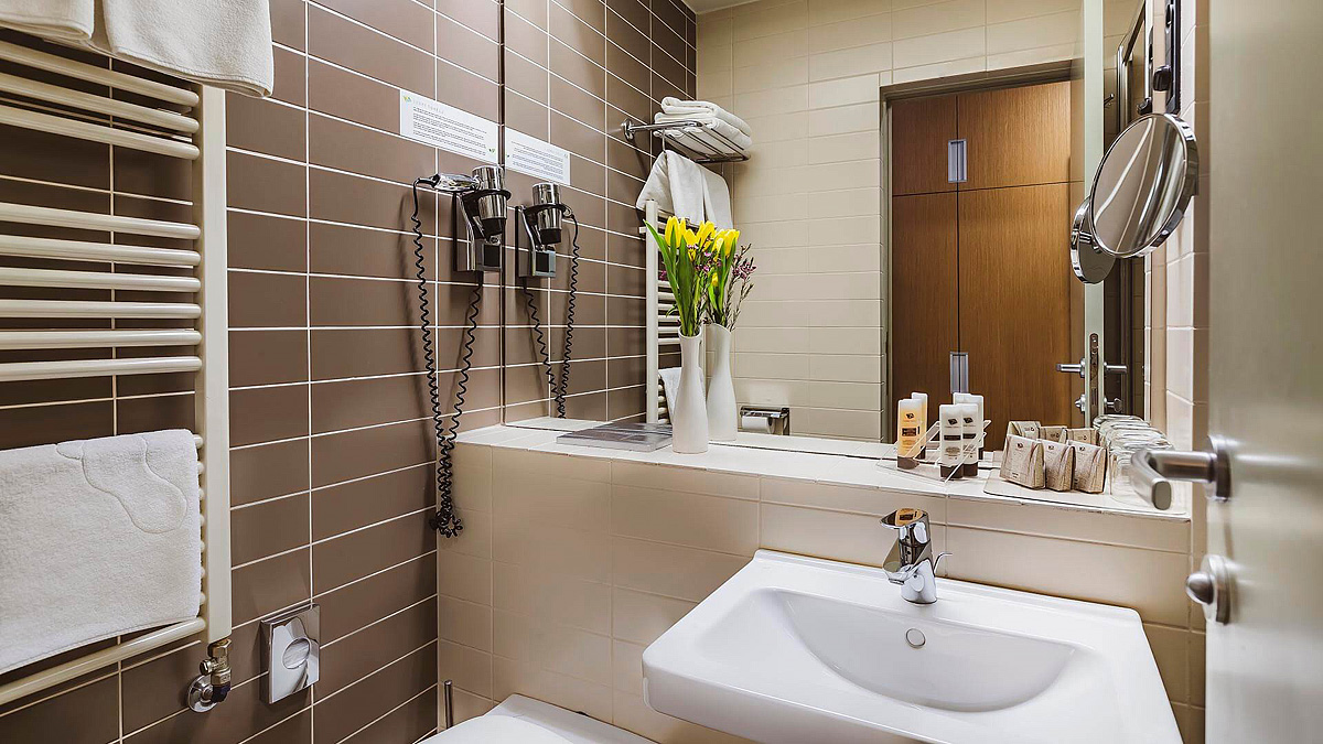 pokoj se dvěma oddělenými lůžky a možností přistýlky pro 1 osobu, sociální zařízení s vanou či sprchou, balkon