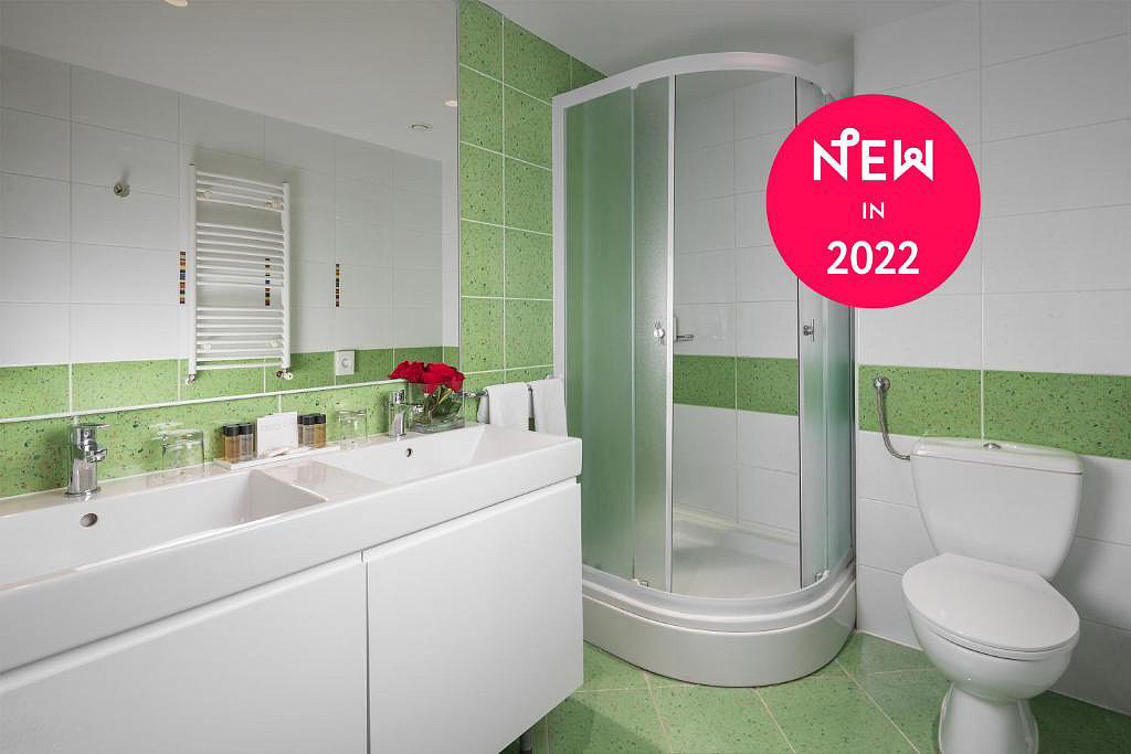 pokoj s manželskou postelí či 2 samostatnými lůžky, sociální zařízení, balkon orientovaný na park; možnost 3. lůžka formou přistýlky pro děti do nedovršených 12 let