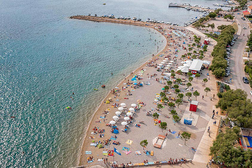 Vodice / Srima, pláž / oblázková s pozvolným vstupem do moře - 350 m, centrum Vodice - 1 km