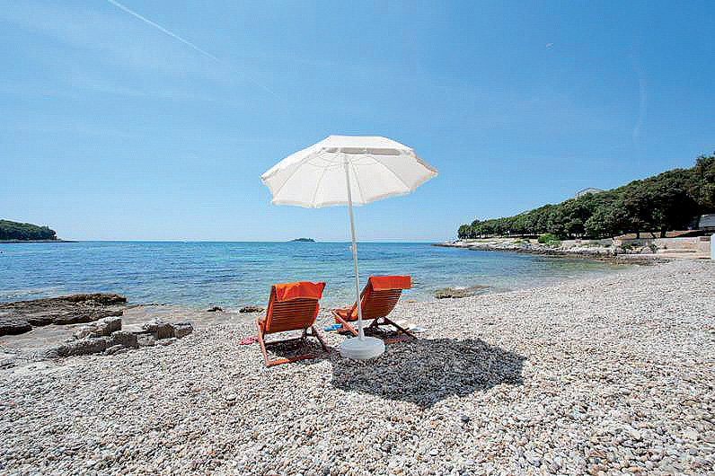 Vrsar, centrum - 800 m, pláž / oblázková, skalnatá, betonová mola - 30 až 100 m