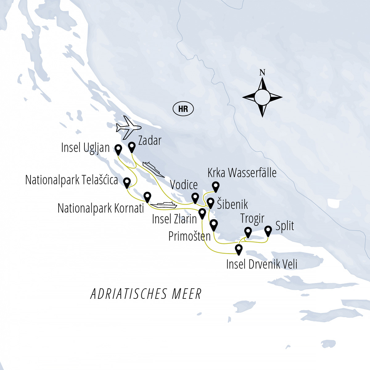 Objevte tajemství Dalmácie v sedmi dnech. V rámci programu navštívíte národní park Krka, kde budete mít možnost projít se kolem překrásných vodopádů, proplujete národním parkem Kornati a strávíte noc v přírodním parku Telašćica. Okoupete se v krásných zátokách Jaderského moře a vydáte se za poznáním historických měst Split, Šibenik a Zadar. Pohodlné kajuty, výborné jídlo a nezapomenutelná atmosféra na palubě – to vše vás čeká na této jedinečné cestě po Dalmácii.