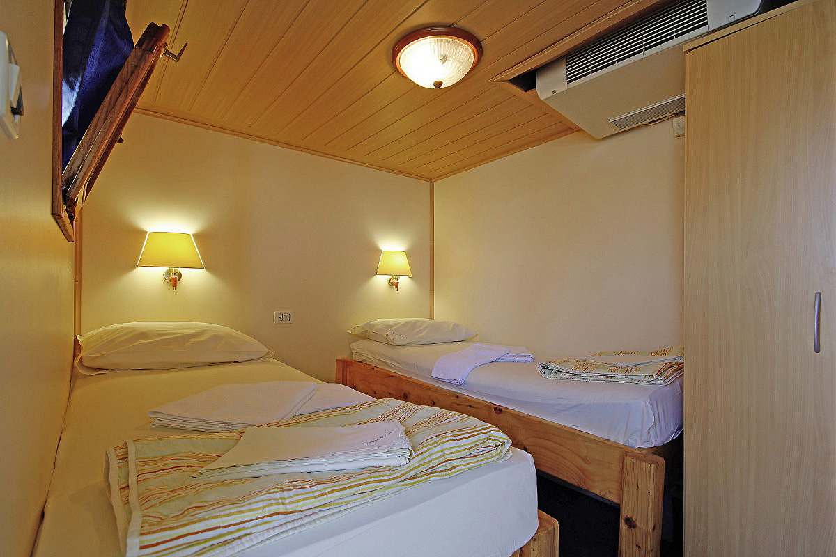 kajuta s palandou nebo francouzským lůžkem, vlastní sociální zařízení se sprchou a WC, popis platí i pro Comfort plus 1