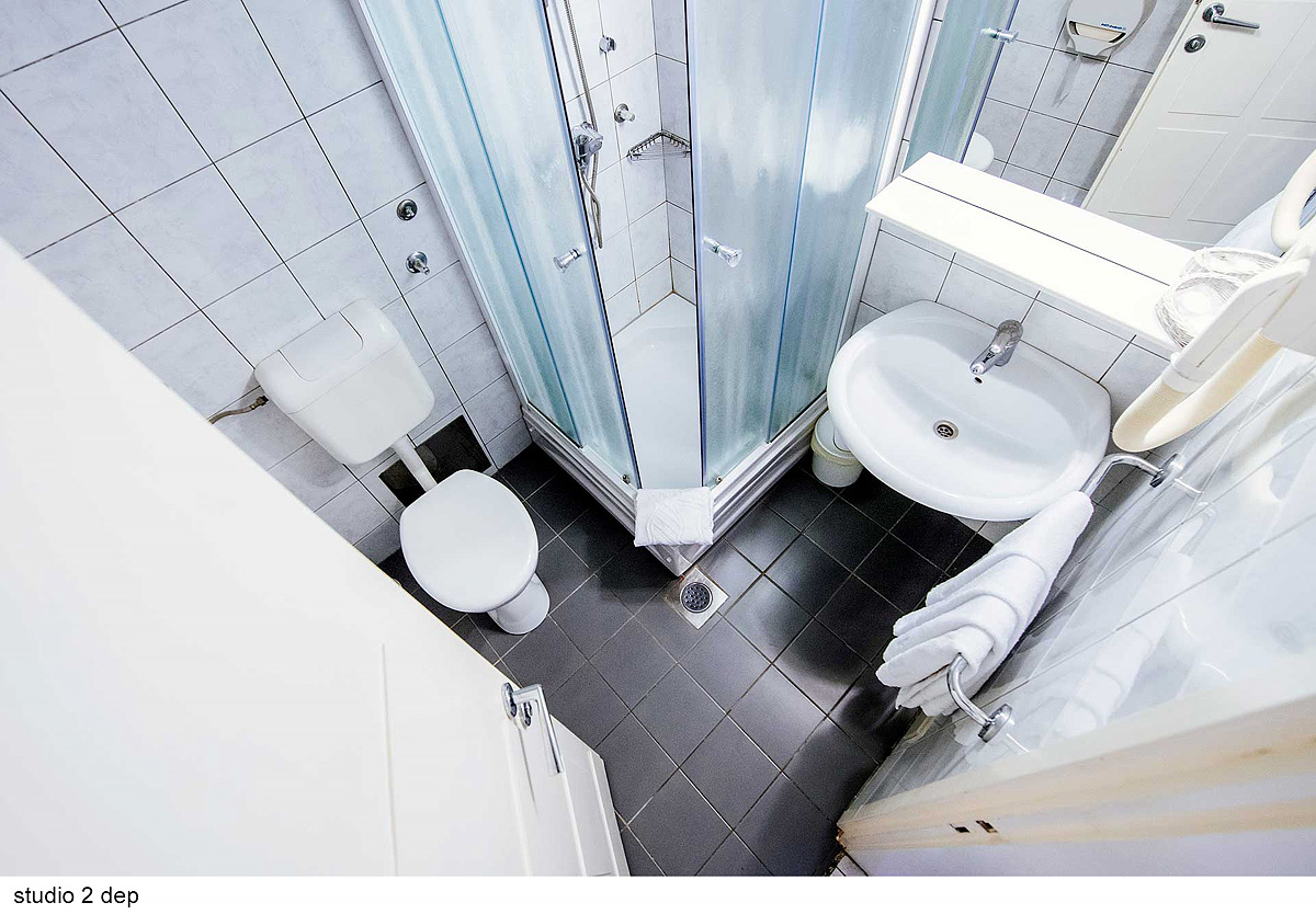cca 25 m² - obývací pokoj s kuchyňským koutem a manželskou postelí nebo rozkládací pohovkou, sociální zařízení se sprchou, balkon nebo terasa