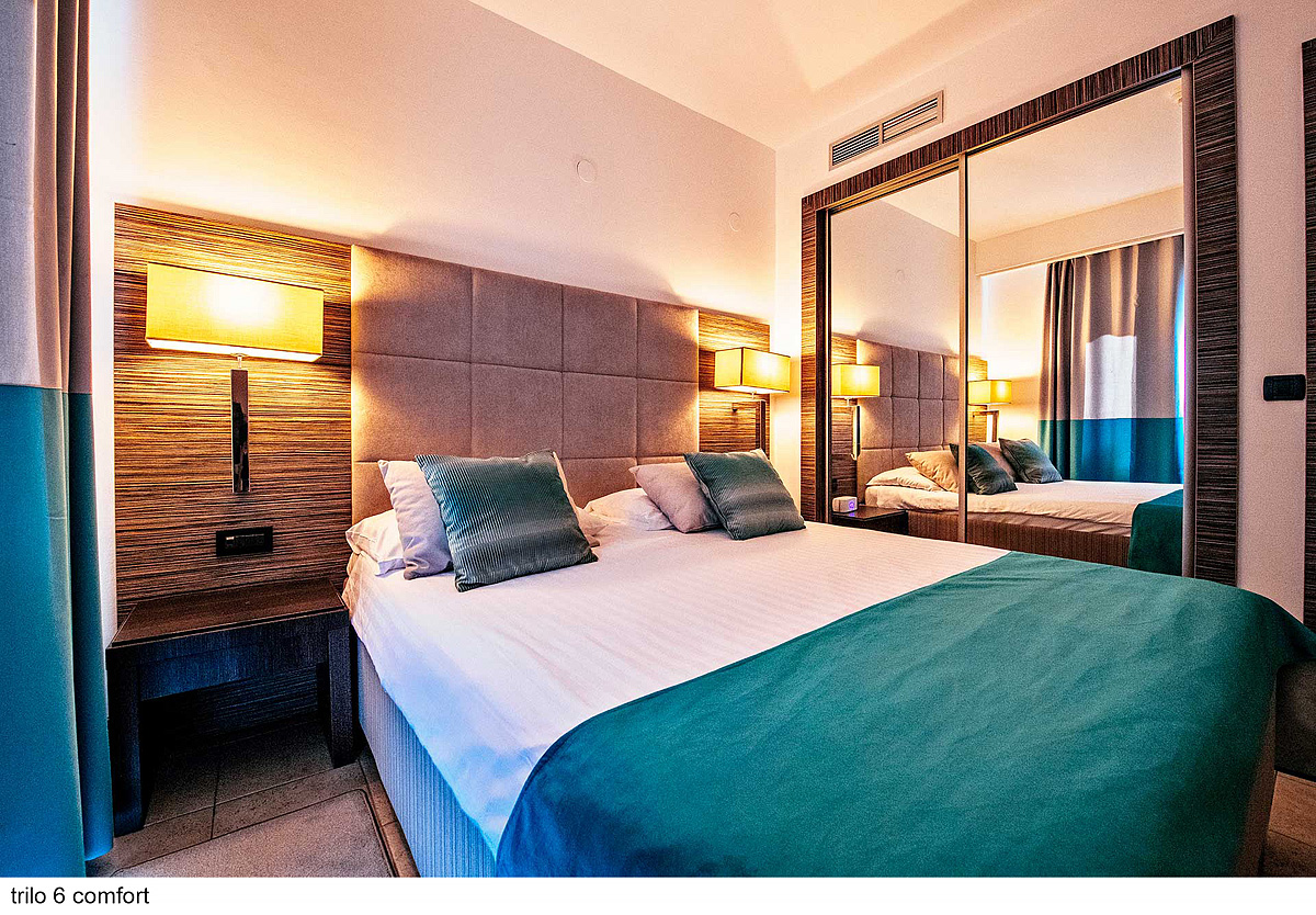 klimatizace, TV sat., telefon, trezor, fén, kávovar, rychlovarná konvice, mikrovlnka (v typu comfort a superior)