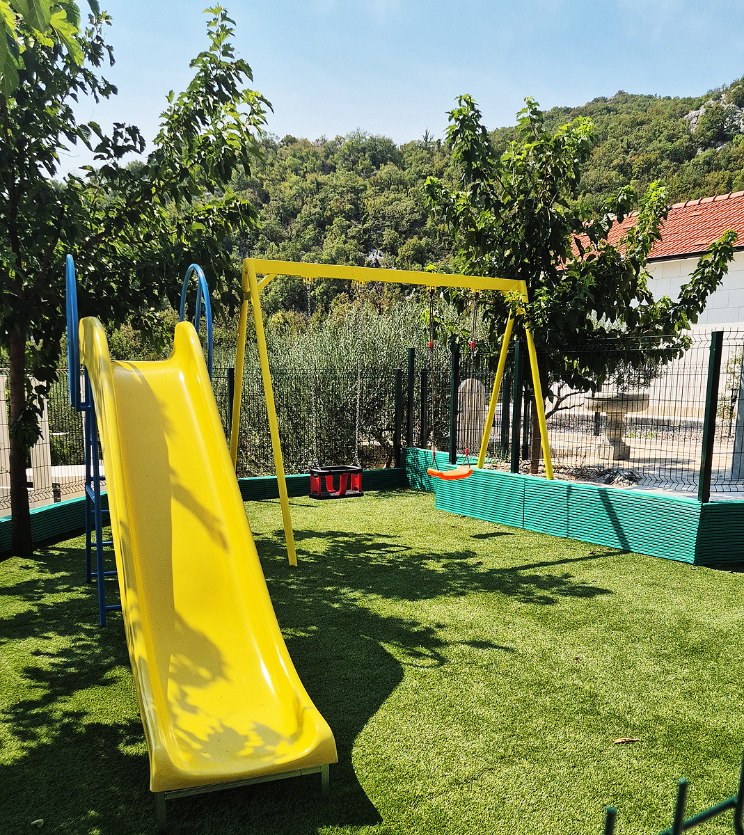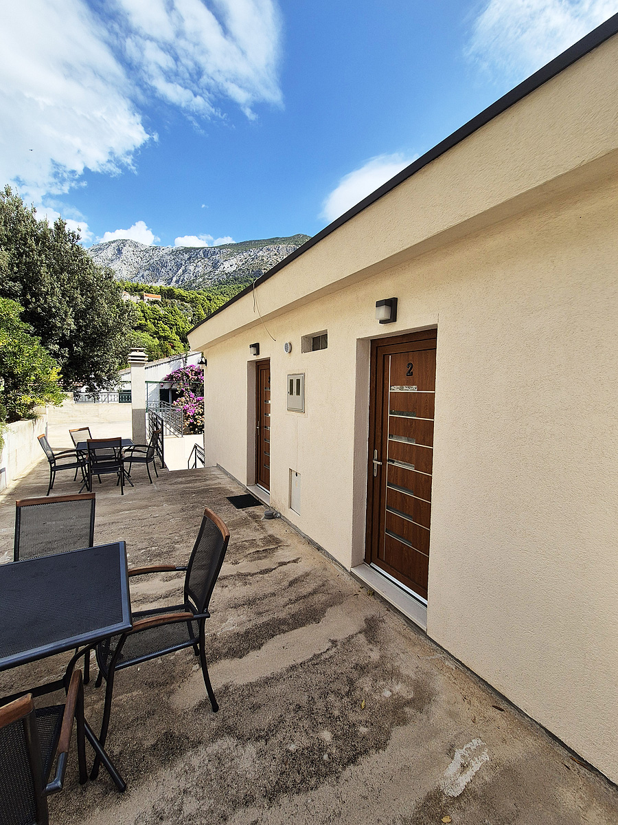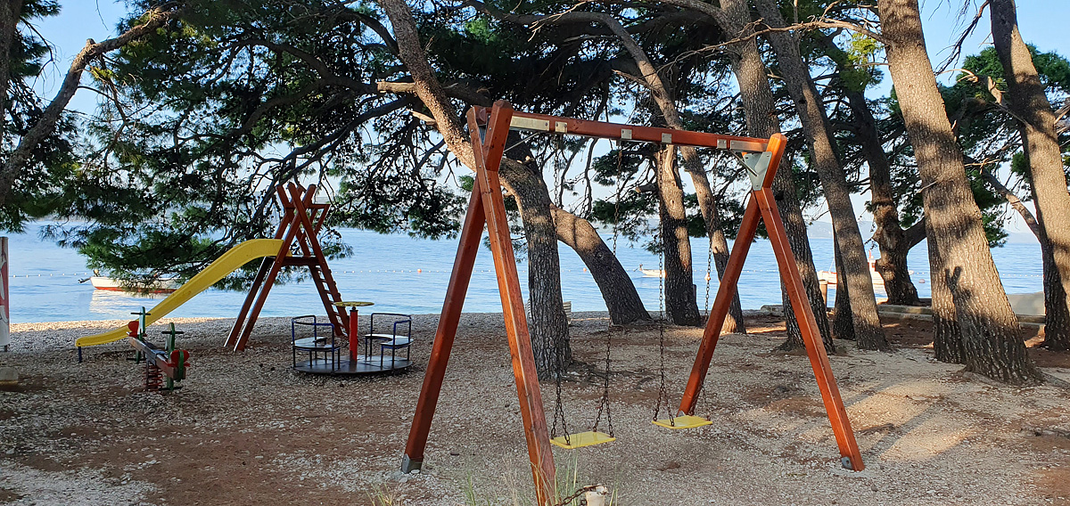Apartmány Anja se nacházejí v klidné části, přibližně 60 m od pensionu Mala Duba. Pro sezónu 2025 je plánována realizace venkovního dětského koutku. Pláže jsou zde oblázkové a jsou vybaveny převlékacími kabinkami a sprchami. V hlavní sezóně jsou většinou na pláži dostupné k pronájmu slunečníky a lehátka, taktéž nabídka vodního sportovního vybavení. Naleznete zde dětské hřiště, minimarket, ovocný trh a restauraci.