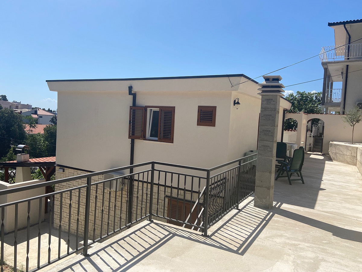 2 pokoje s manželskou postelí, obývací pokoj s kuchyňským koutem a rozkládací gauč pro dítě do nedovršených 18 let, sociální zařízení se sprchou, terasa, přízemí