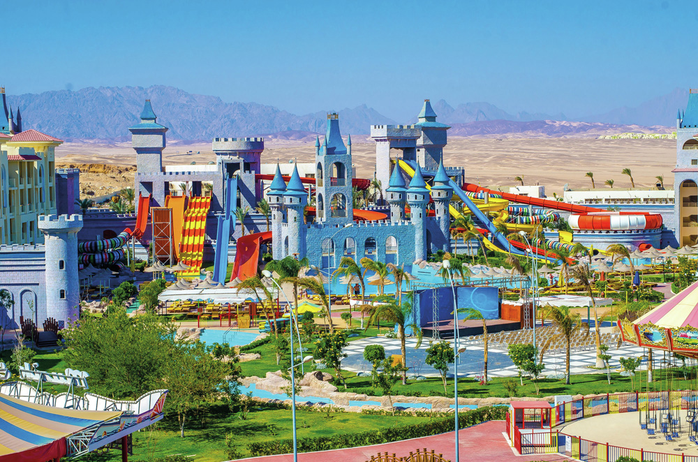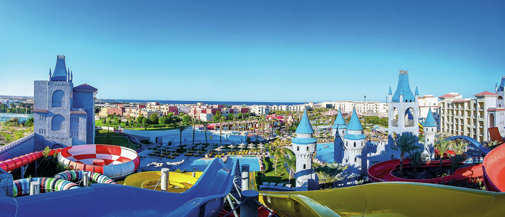 Hotel s rozsáhlým aquaparkem a lunaparkem situovaný za Sesterským hotelem Serenity Makadi Beach, cca 34 km jižně od letiště a asi 37 km od centra Hurghady.