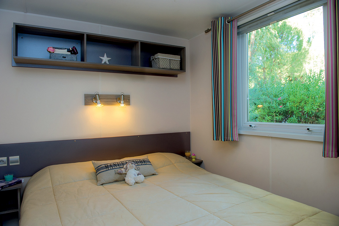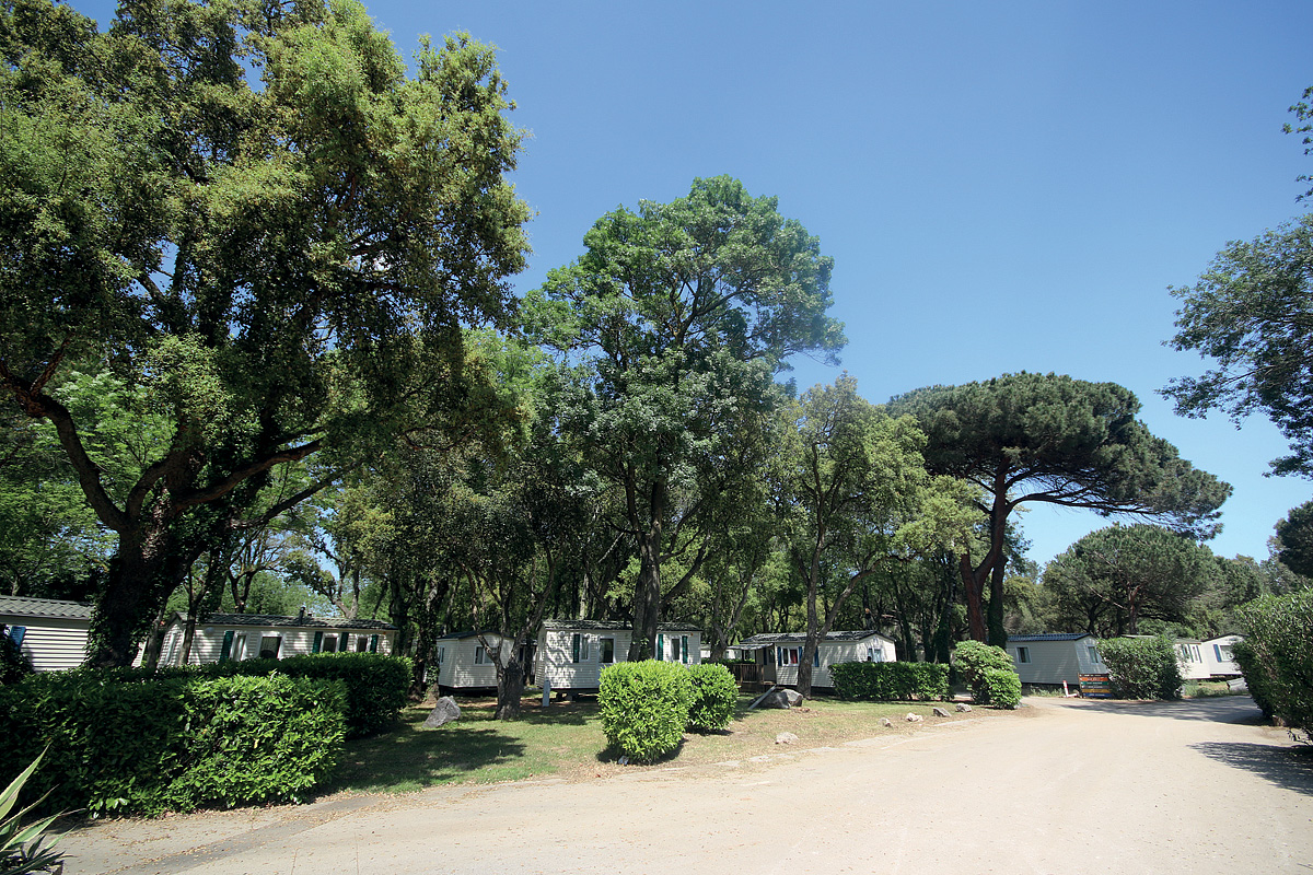 mobilní domky v rámci rozsáhlého kempu s širokou vybaveností rozkládající se nedaleko přístavu Cogolin