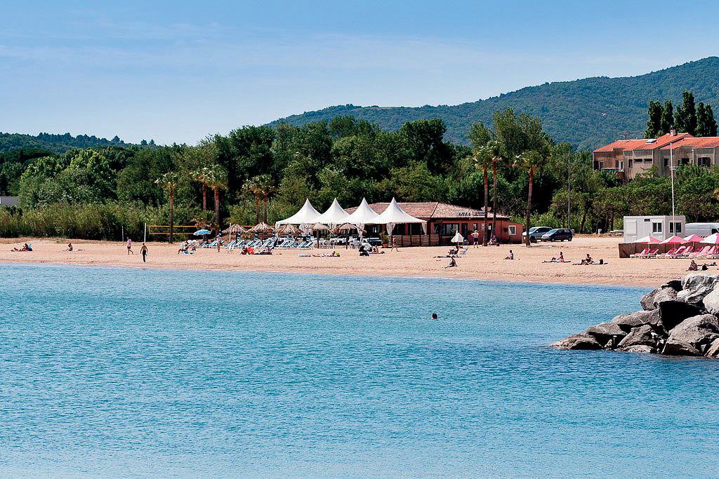 oblíbený kemp nedaleko přístavu jachet a jen 5 minut chůze od písečné pláže s výhledem na Sainte-Maxime