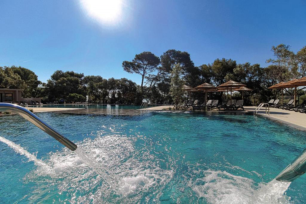 vyhřívaný venkovní bazén 25 x 10 m se slunečníky a lehátky, dětské brouzdaliště 30 m² , vodní sporty (půjčovna lodiček*, paddleboardů*, kajaků*), 5 venkovních tenisových kurtů, volejbalové hřiště, multifunkční sportovní hřiště, venkovní dráha pro petanque, stolní tenis, minigolf, půjčovna jízdních kol*, v blízkosti kitesurfing*, karting*, golf*, škola potápění*