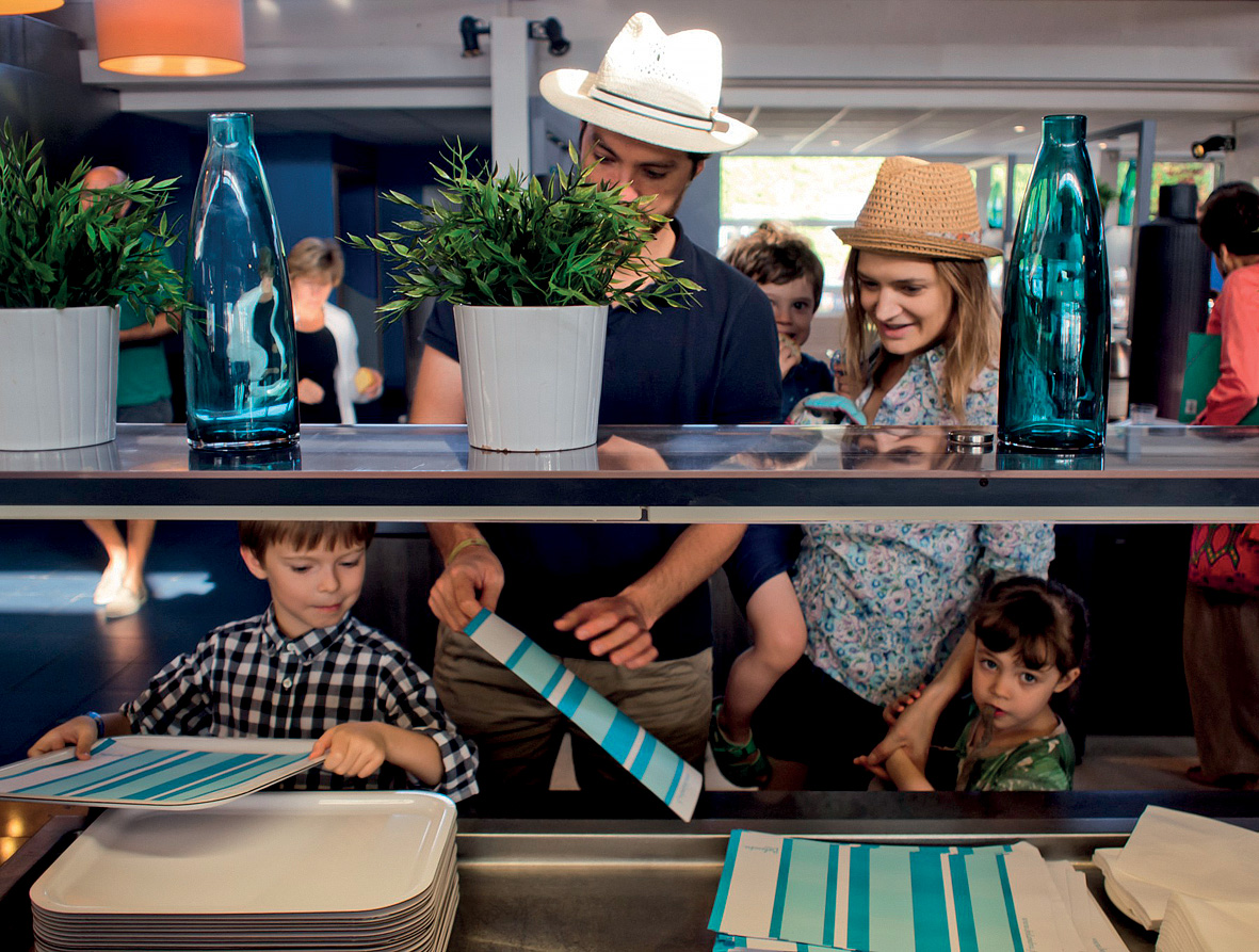 formou bufetu studených předkrmů a polévek, 3 až 4 hlavních jídel, příloh, salátů, dezertů a sýrů, voda, červené a růžové víno v ceně; speciální nabídka formou bufetu pro děti od 0 do 2 let