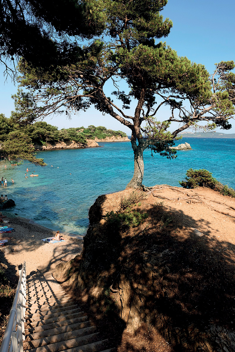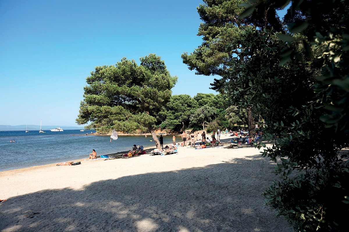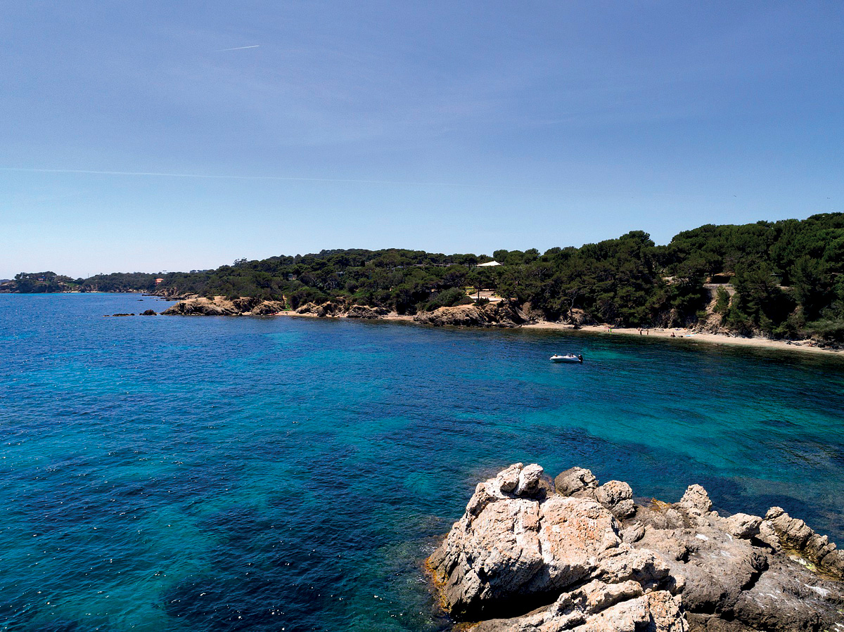 Hyères - poloostrov Giens, pláž / vyhrazená s hrubým pískem až jemnými oblázky - do 100 m, centrum Hyères - 12 km