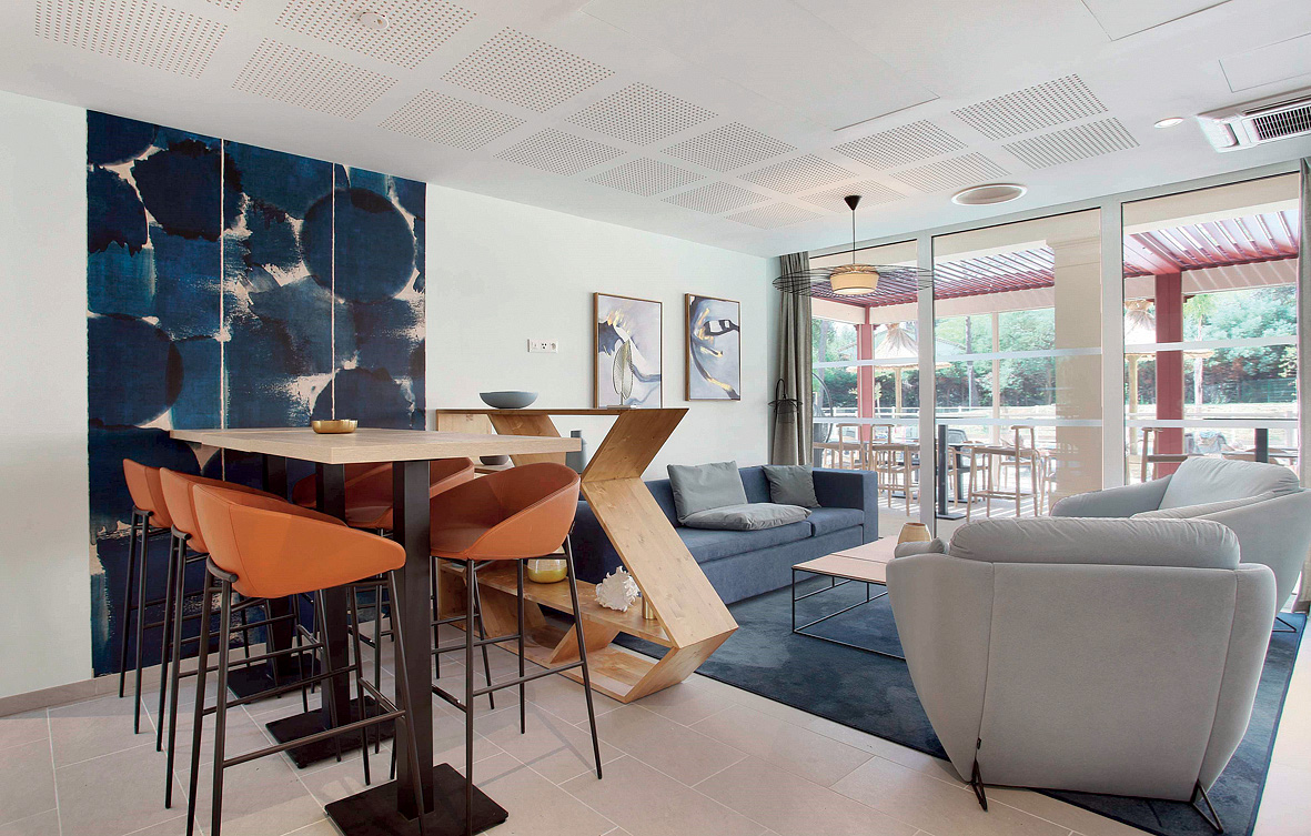 recepce / lobby / výtah, jídelna pro snídaně s terasou a barem, seminární místnost, garáže (1 místo / apartmán), vyhrazené parkoviště