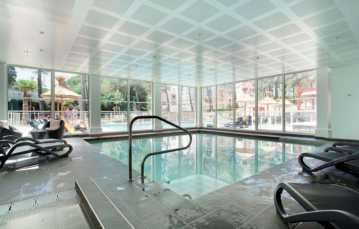 venkovní bazén a dětský bazének s lehátky (vyhřívaný kromě období od 01.07. do 31.08.), finská sauna*#, pára*#, vířivka#, posilovna, masáže*#, venkovní dráha pro petanque; služby označené # mohou využívat jen osoby starší 16 let