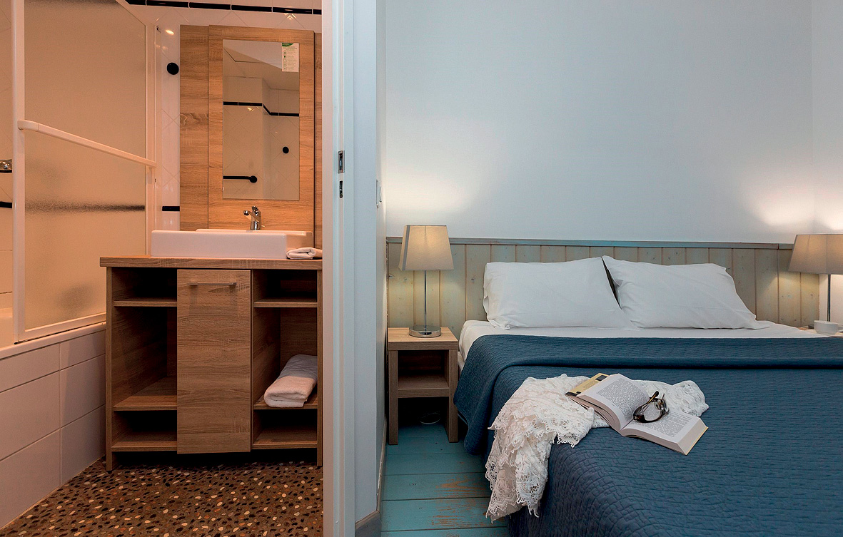 residence sestávající se ze 4 budov, přičemž hlavní budova (3 patra, bez výtahu) s recepcí se nachází přímo nad pláží