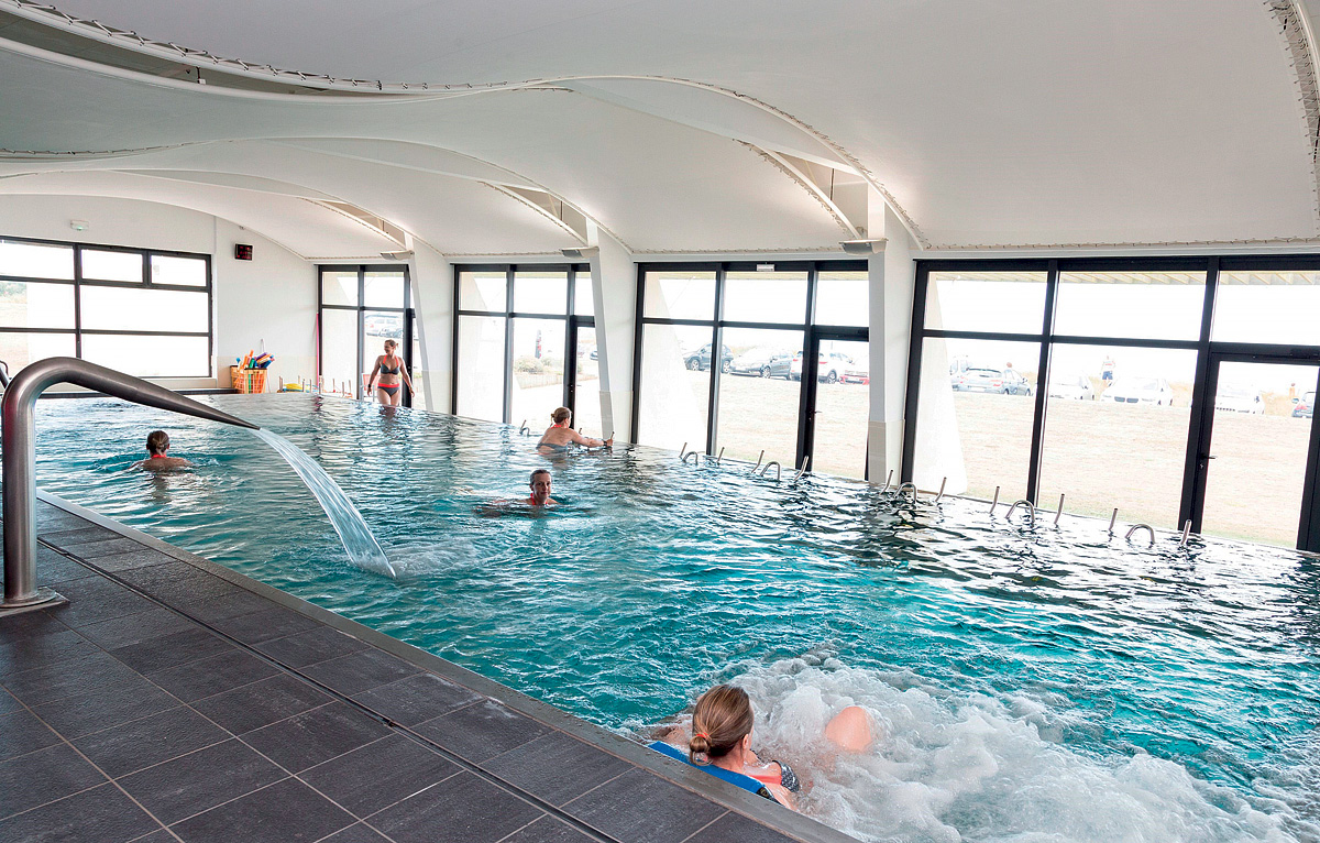 vyhřívaný venkovní bazén 12 x 6 m s lehátky a dětským bazénkem, Spa Odalys (vnitřní bazén s hydromasážními tryskami#, sauna#, pára#, posilovna#, vířivé vany*#, kosmetické služby*#, masáže*#); služby označené # mohou využívat jen osoby starší 16 let
