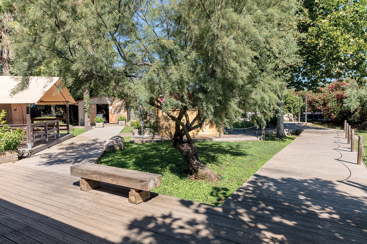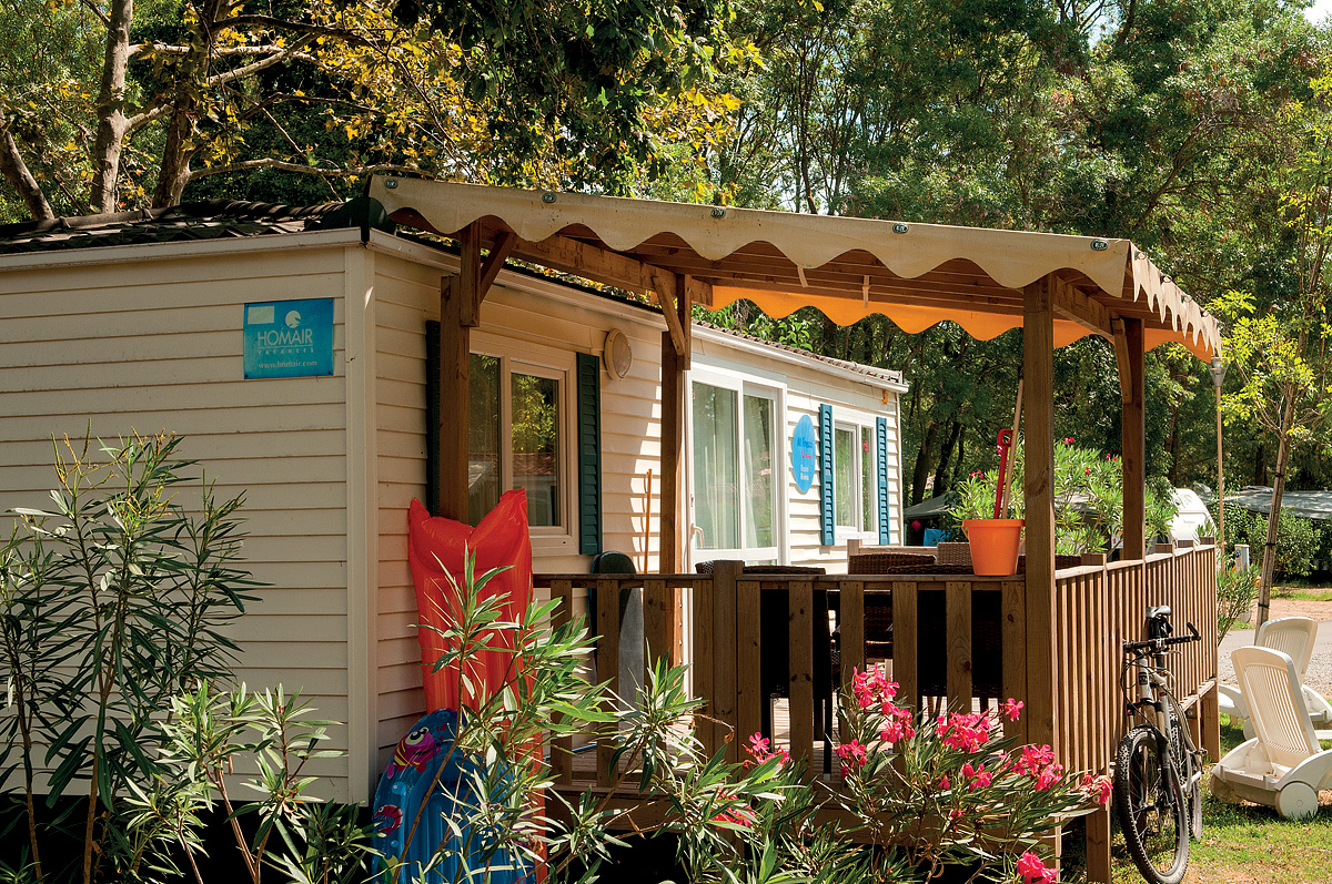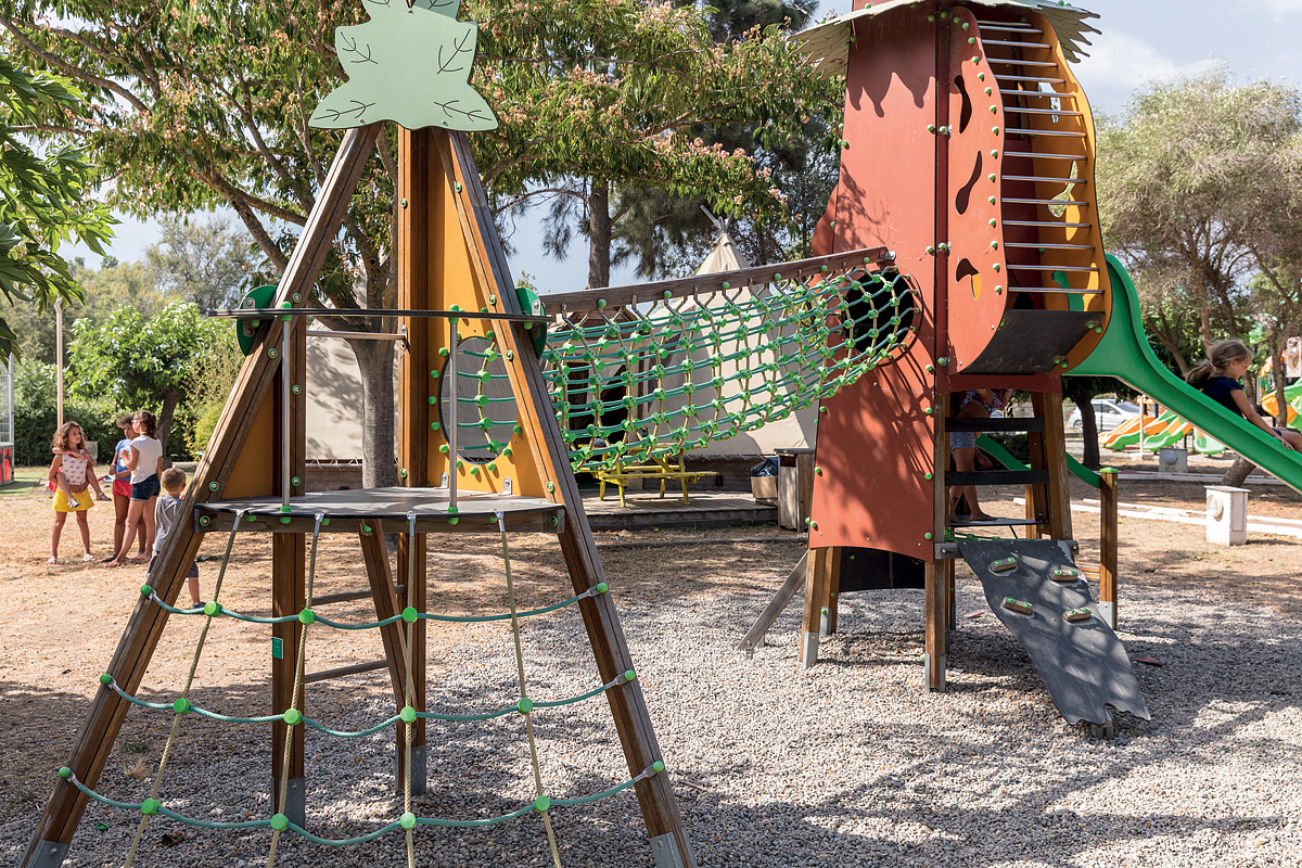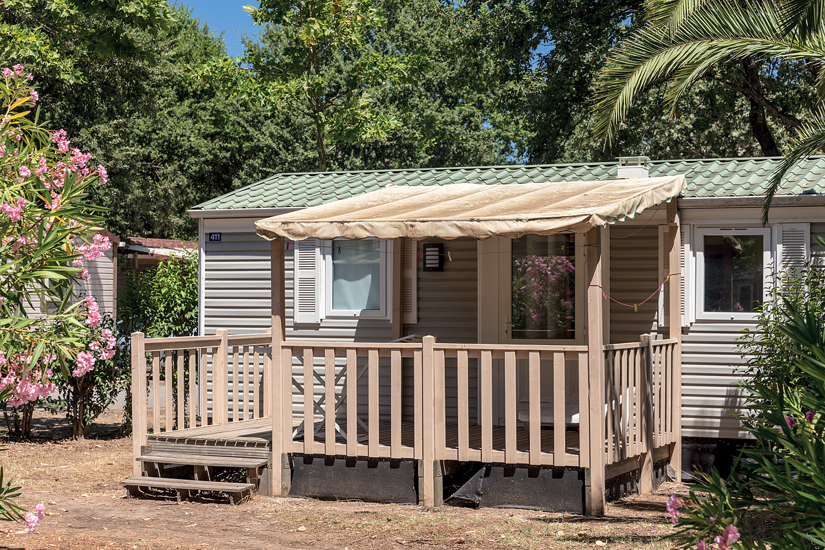 mobilní domky a bungalovy v rámci rozsáhlého kempu s širokou vybaveností rozkládajícího se podél dlouhé písečné pláže
