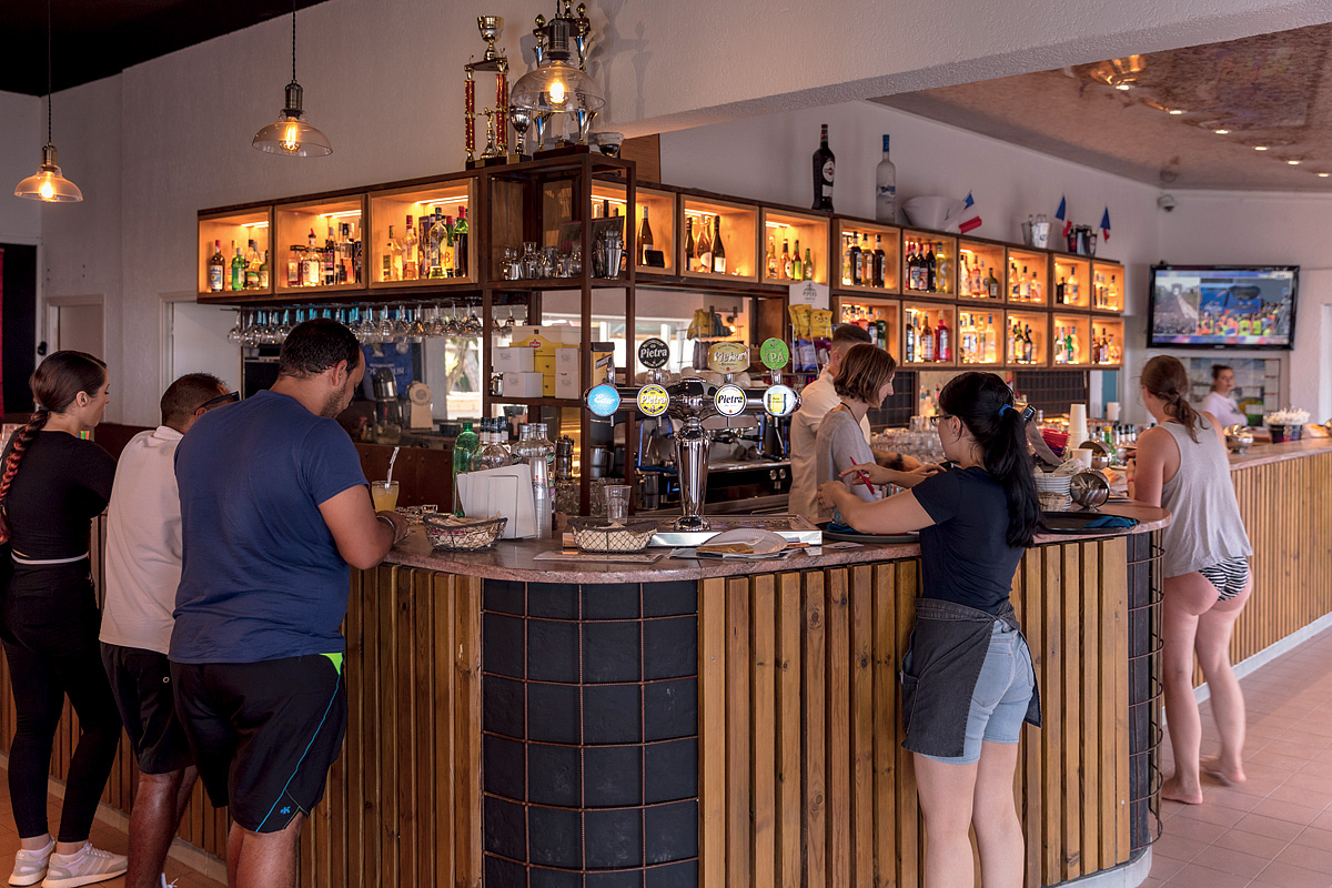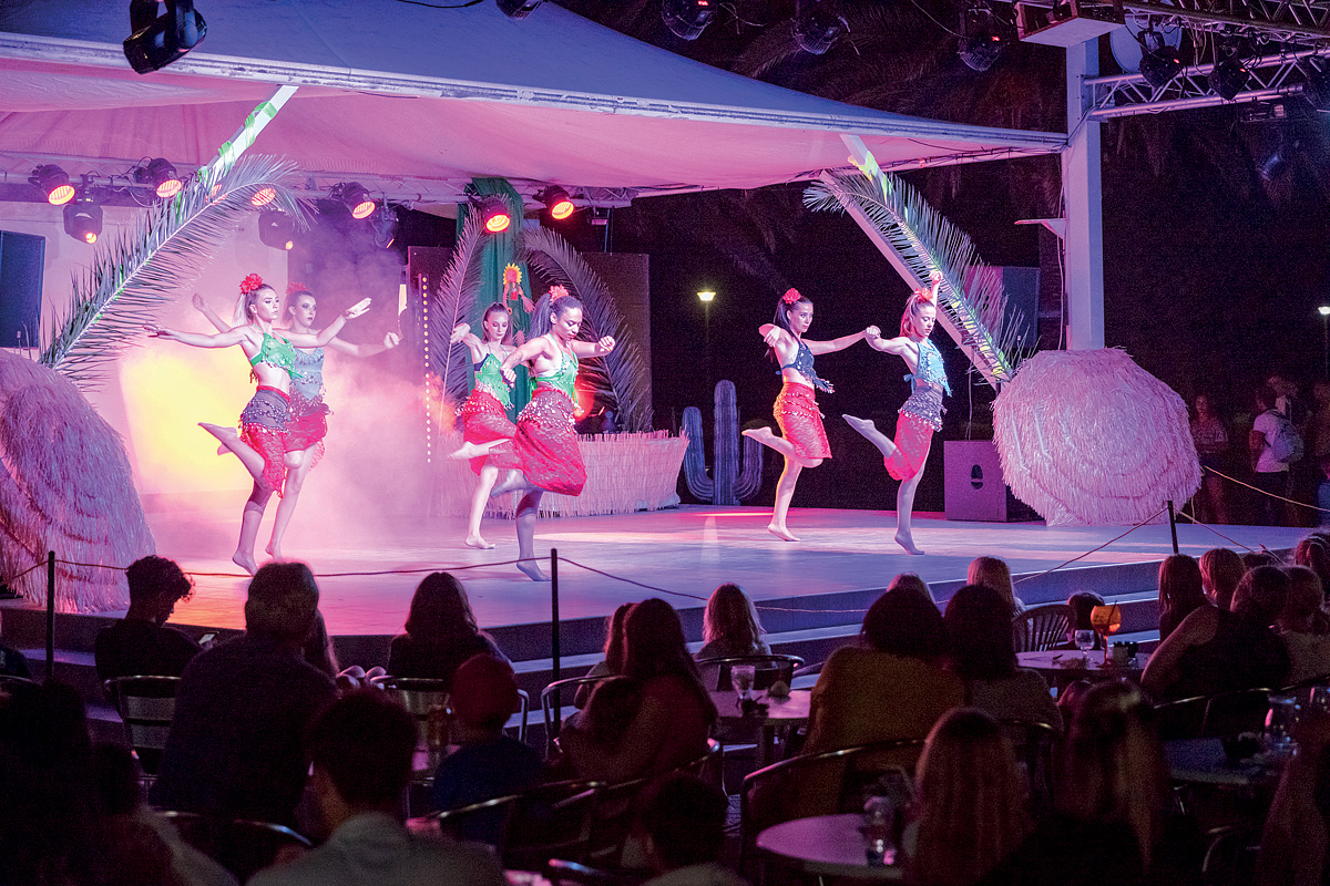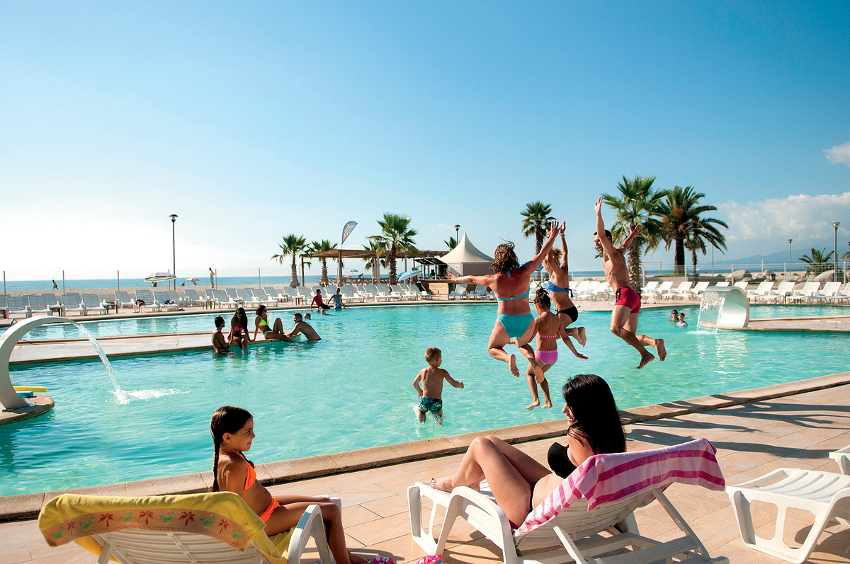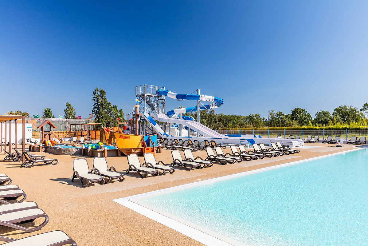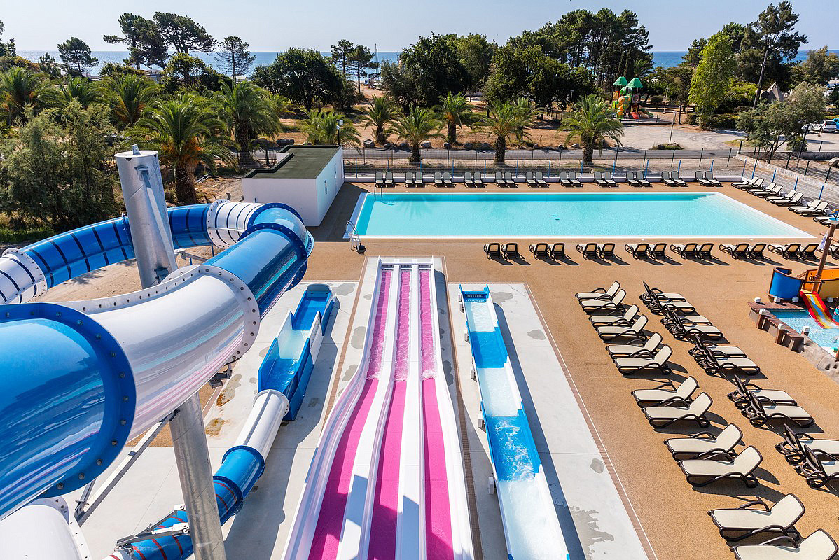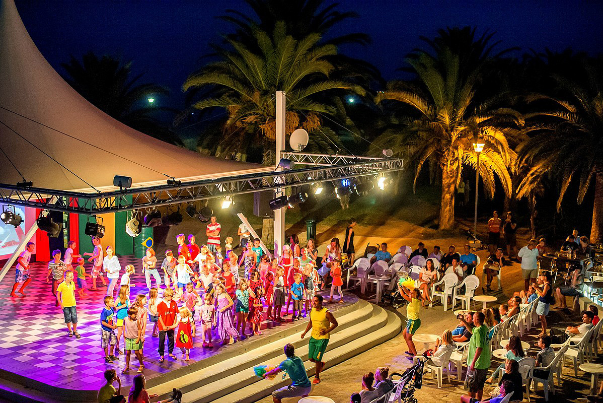 velký vyhřívaný venkovní bazén nepravidelného tvaru s lehátky# (od 01.07. do 31.08. vstup pouze osobám starším 16 let), vyhřívaný venkovní bazén 25 x 15 m s lehátky#, 3 tobogány#, dětský bazén s atrakcemi#, relaxační centrum (masáže*, kosmetické služby*, kadeřník*), finská sauna*#, vířivka*#, venkovní dráha pro petanque, stolní tenis, biliár, tenisový kurt, plážový volejbal, multifunkční sportovní hřiště, pronájem lodí*; služby označené # mohou využívat děti mladší 12 let jen v doprovodu dospělé osoby