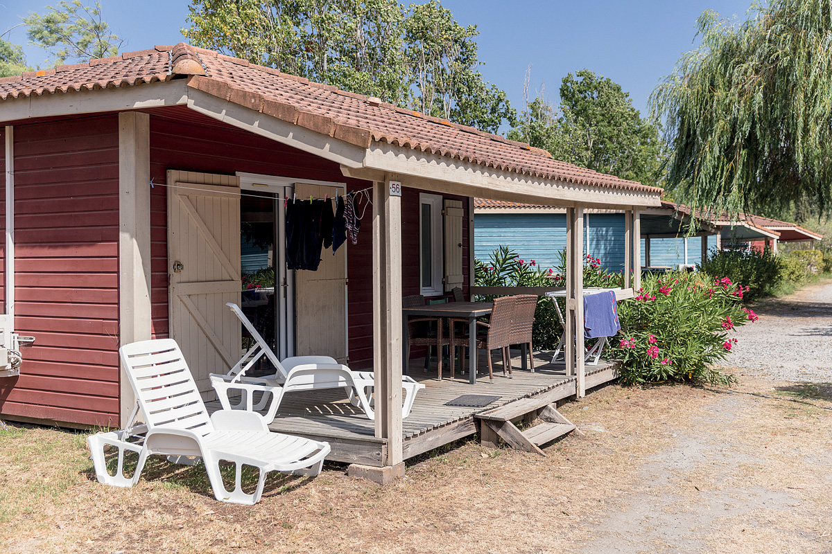 25 m² - 1 menší ložnice s manželskou postelí (140 x 200 cm), 1 menší ložnice se 2 samostatnými lůžky (80 x 190 cm), obývací pokoj s kuchyňským koutem a rozkládacím gaučem (130 x 190 cm) pro 2 osoby do 15 let, sociální zařízení se sprchou, menší terasa s posezením (12 m²)