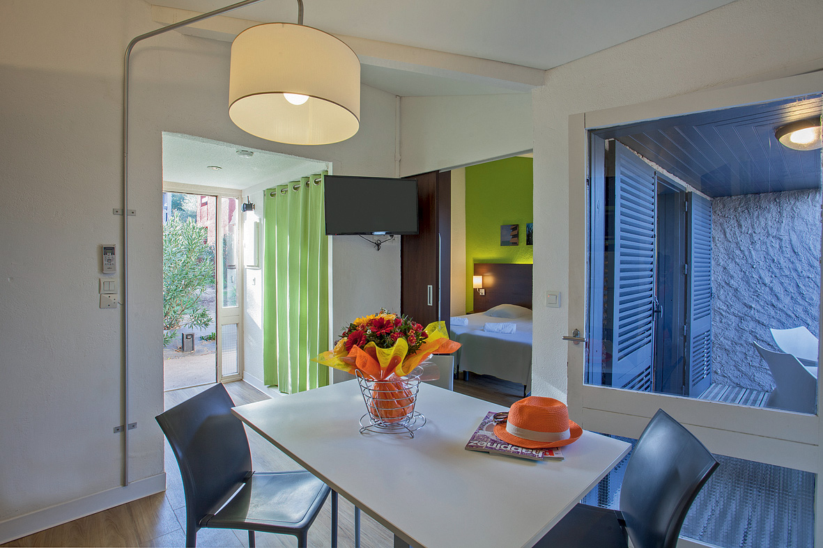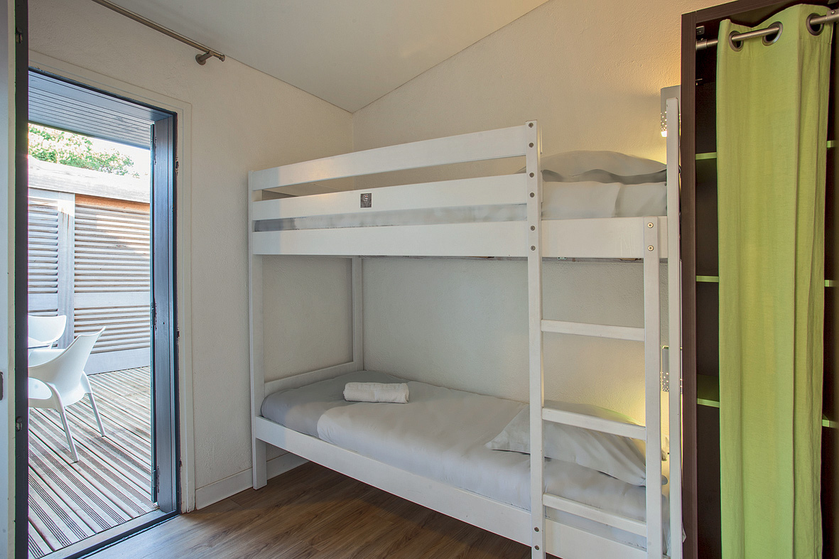 28 až 35 m²- 1 pokoj se 2 samostatnými lůžky (možnost spojení v manželskou postel) s kuchyňským koutem, 1 pokoj s palandou a 1 samostatným lůžkem, sociální zařízení se sprchou, terasa
