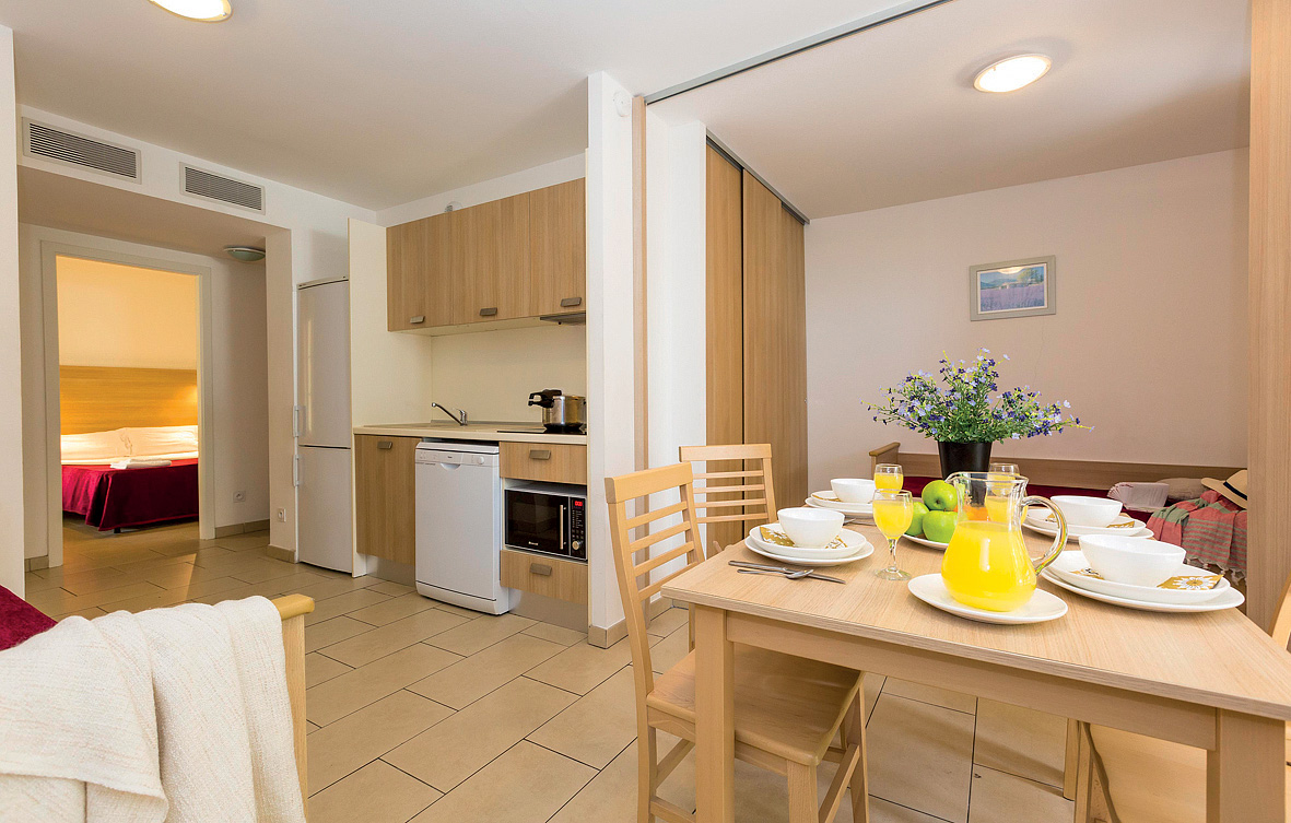 děti do nedovršených 2 let zdarma (bez nároku na lůžko a služby; max. 1 dítě nad rámec plného obsazení apartmánu)