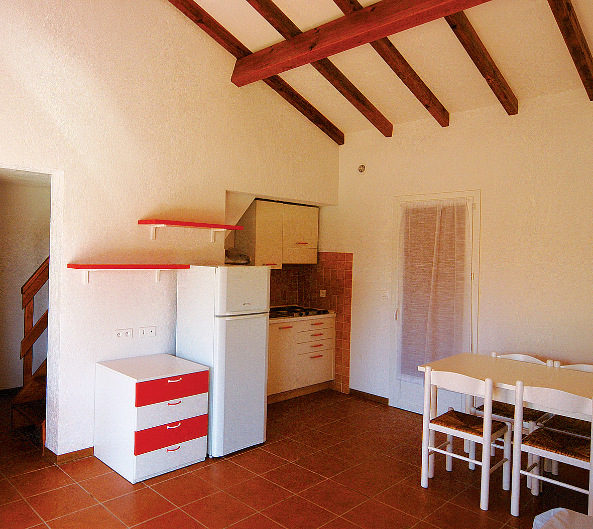 30 m² - 1 ložnice s manželskou postelí, obývací pokoj s kuchyňským koutem a rozkládacím gaučem pro 2 osoby (možno i typ "šuplík"), sociální zařízení se sprchou, balkon, terasa či předzahrádka