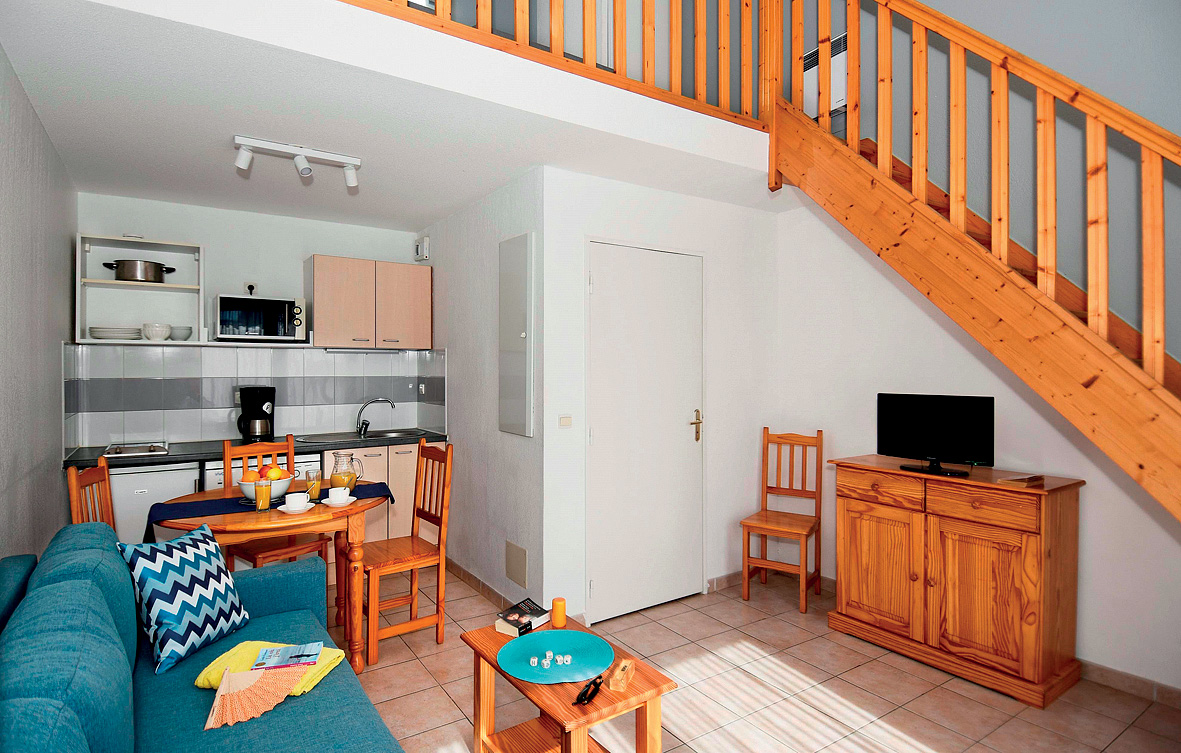 40 m² - 1. podlaží: obývací pokoj s kuchyňským koutem a rozkládacím gaučem pro 2 osoby (možno i typ "šuplík"), 1x WC, terasa s posezením; 2. podlaží: 1 ložnice s manželskou postelí, 1 ložnice se 2 samostatnými lůžky či palandou, sociální zařízení se sprchou (bez WC)