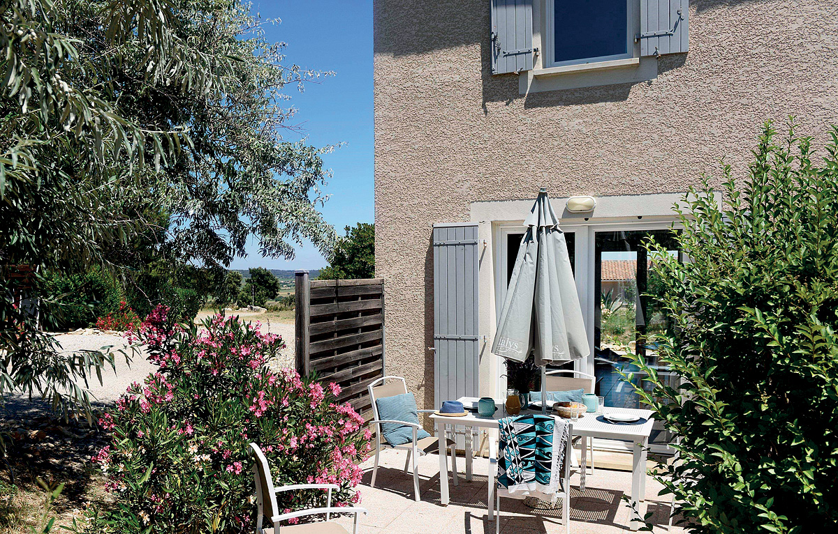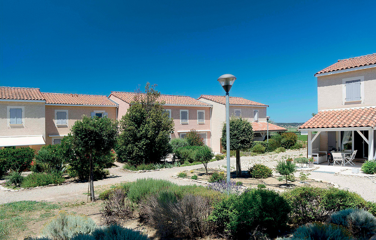 residenční komplex v srdci jihofrancouzského venkova sestávající se z patrových řadových domků obklopených typickou středomořskou vegetací