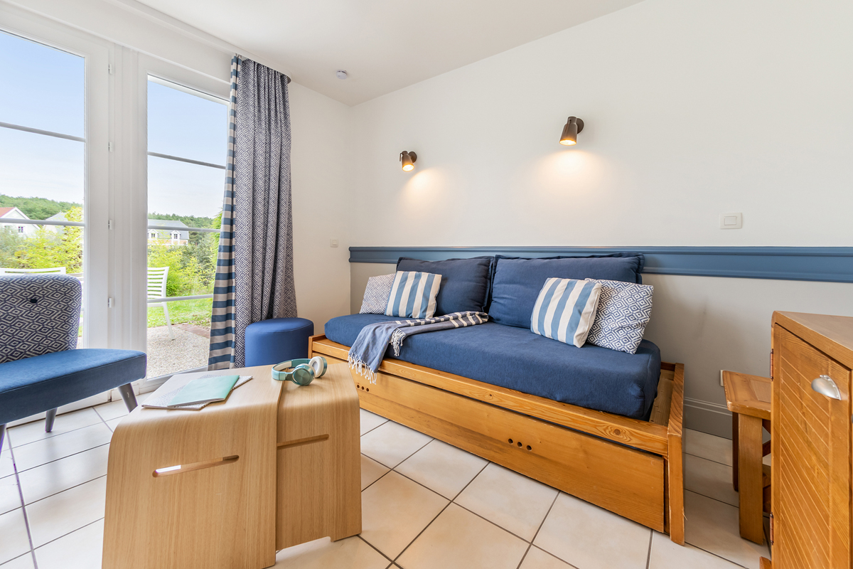 30 m² - 1 ložnice se 2 samostatnými lůžky a 1 sklopným lůžkem, obývací pokoj s kuchyňským koutem a rozkládacím gaučem (typ šuplík), 1 sociální zařízení, terasa