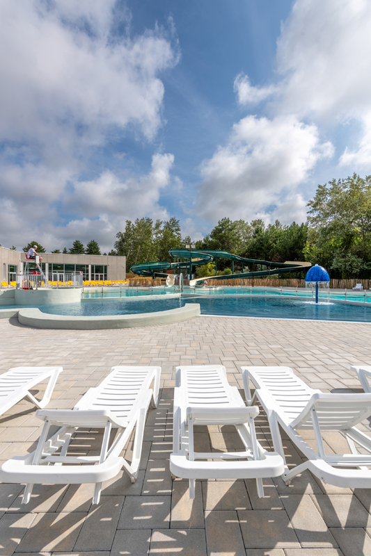 vnitřní bazén s vlnami, toboganem a brouzdalištěm (celoročně), venkovní bazén s tobogany a vířivkou (červenec–srpen), plavecký bazén 25 m*, sauna*, hammam*, posilovna*; minigolf, tenis, stolní tenis, padel*