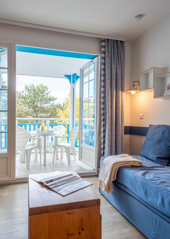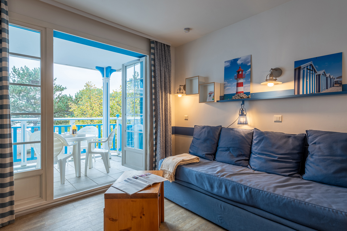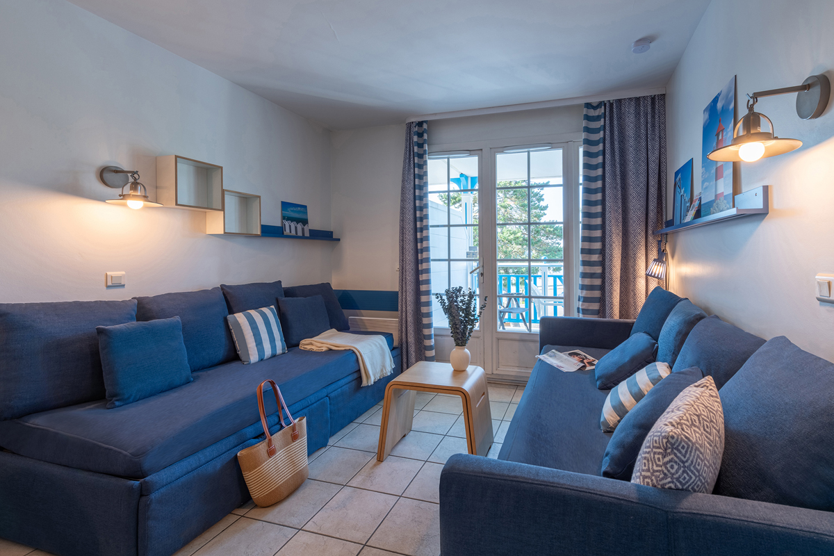 22 m² - 1 ložnice se 2 samostatnými lůžky, obývací pokoj s kuchyňským koutem a rozkládacím gaučem pro 2 osoby (možno i typ "šuplík"), sociální zařízení, balkon či terasa