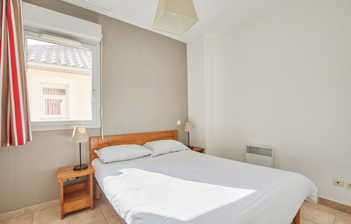 44 m² 1 ložnice s manželskou postelí, 1 ložnice se 2 samostatnými lůžky, kabina s palandou, obývací pokoj s kuchyňským koutem a rozkládacím gaučem (typ šuplík), koupelna, sprchový kout, oddělené WC; apartmány jsou dvoupodlažní