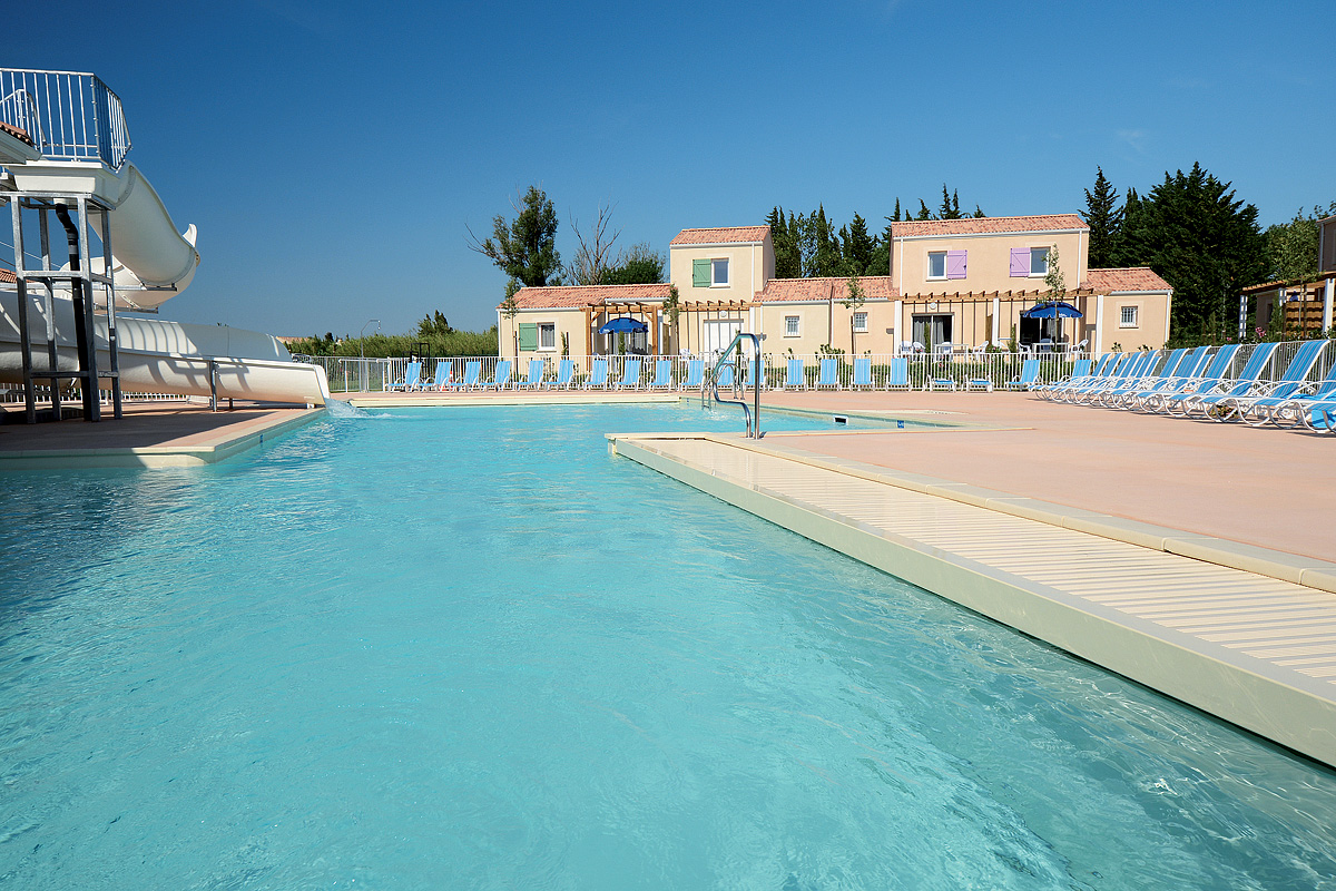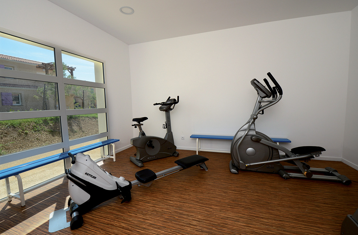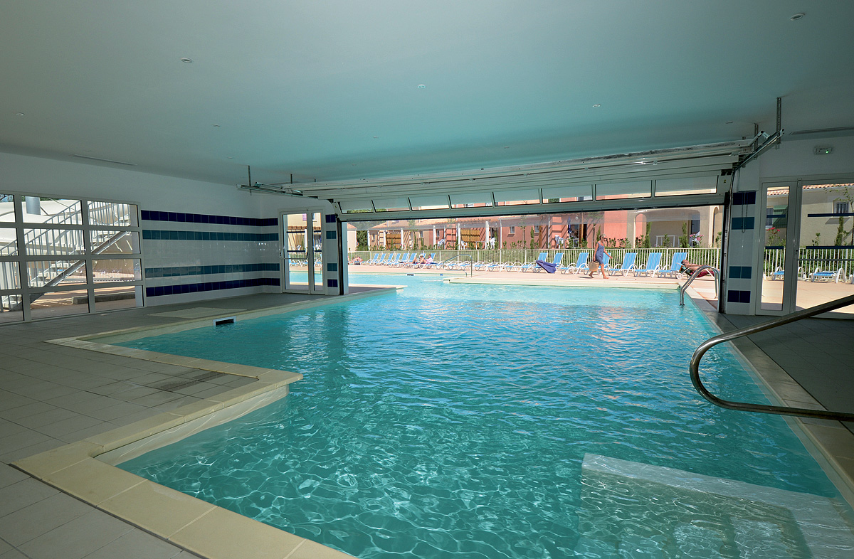 částečně krytý a částečně venkovní bazén 220 m² s tobogánem a lehátky, finská sauna*, pára*, posilovna, menší dětské hřiště, venkovní dráha pro petanque, minigolf, stolní tenis, půjčovna jízdních kol* i elektrokol*